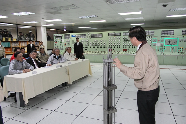 吳院長今日下午在行政院副院長陳冲、秘書長林中森、新聞局長江啟臣、原能會主委蔡春鴻、國科會主委李羅權、經濟部次長黃重球、研考會副主委宋餘俠、新北市長朱立倫等人陪同下視察核二廠,觀看核能安全演練,並前往主控制室訓勉第一線員工。