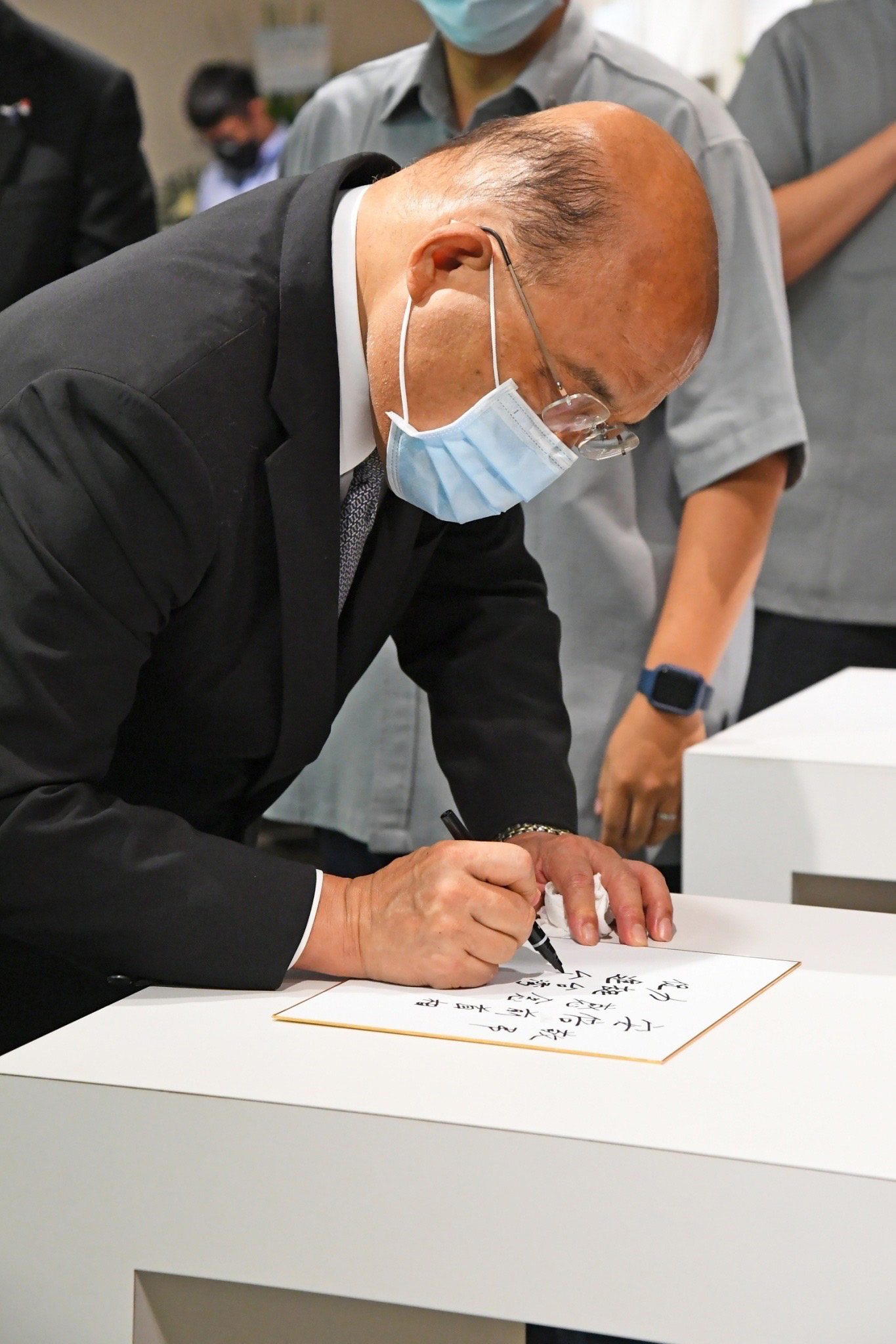 蘇院長說,安倍前首相一直力挺台灣加入國際組織,並在台灣疫情最困難時奔走出力,貢獻極大的力量,讓日本政府六度贈送台灣最需要的疫苗,因此衛生福利部陳時中部長今天也特別前來,要向安倍前首相表示最大的感謝及感念。