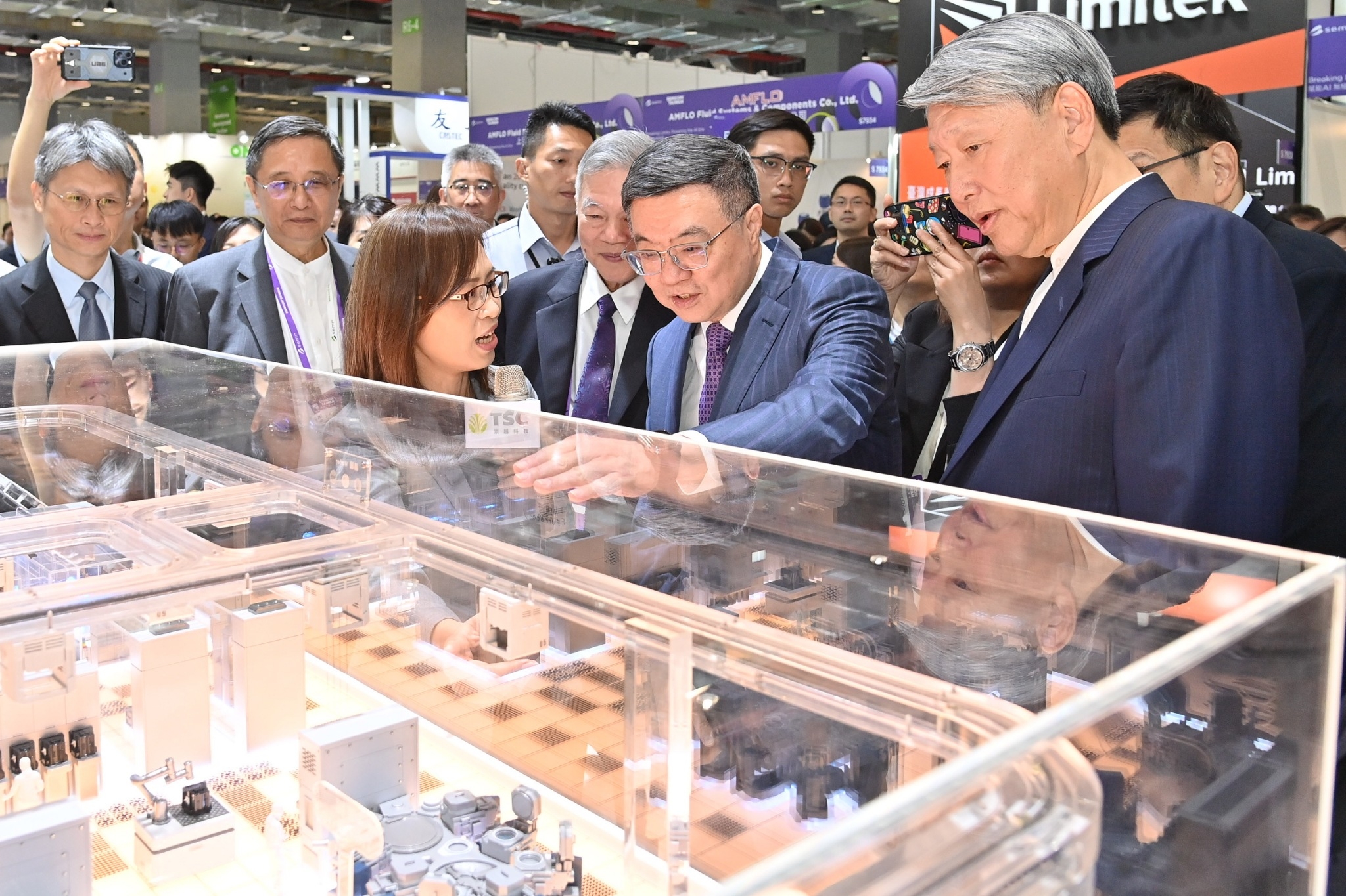 隨後,卓院長前往數位發展部數位產業署SECPAAS資安主題館、台灣工具機暨零組件工業同業公會工具機智慧團隊、宇辰系統科技股份有限公司、崇越科技股份有限公司及美國專區等展區參觀,瞭解半導體等高科技技術的應用及智慧振動監測系統、石英爐管、石英晶舟、石英坩堝等相關設備。