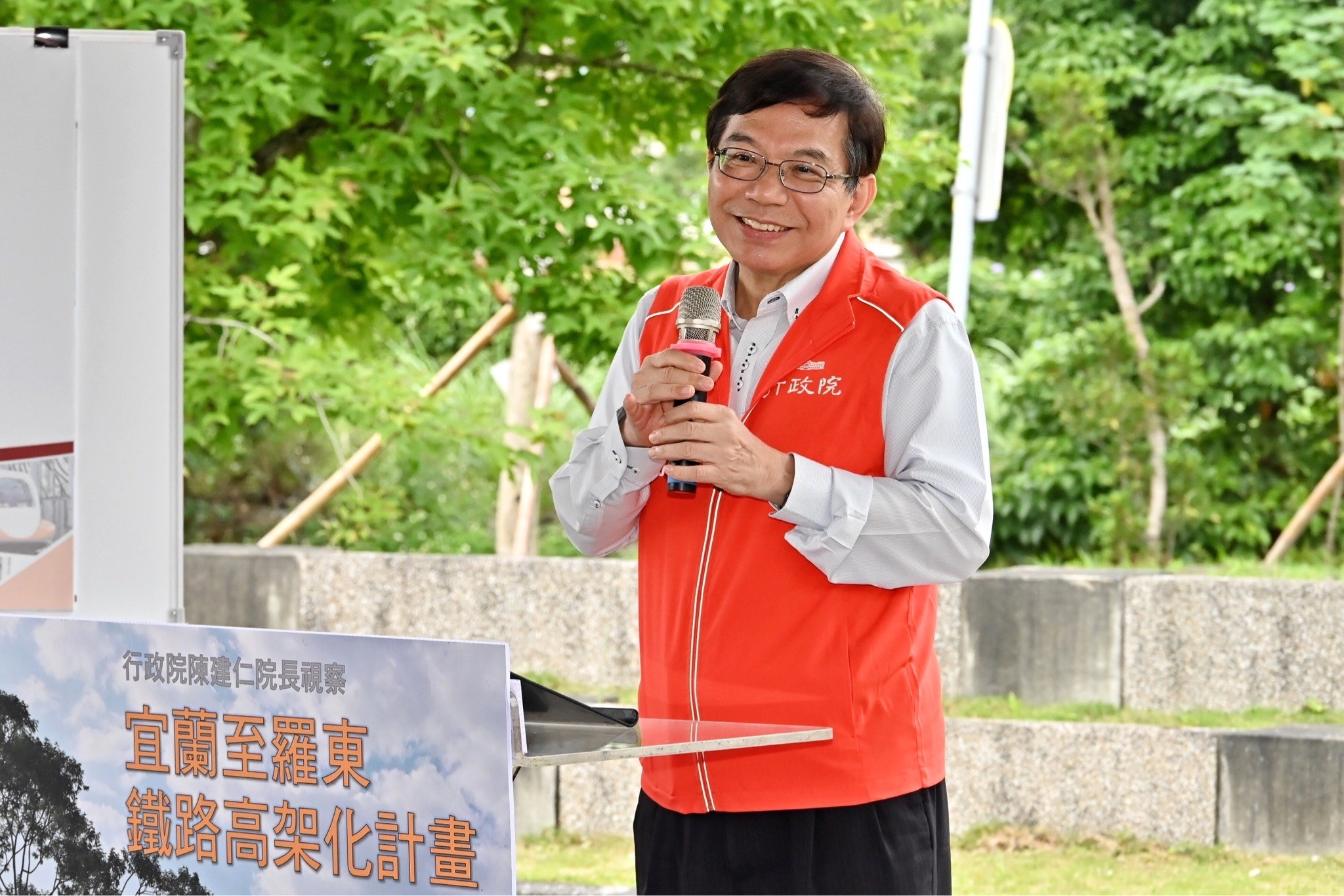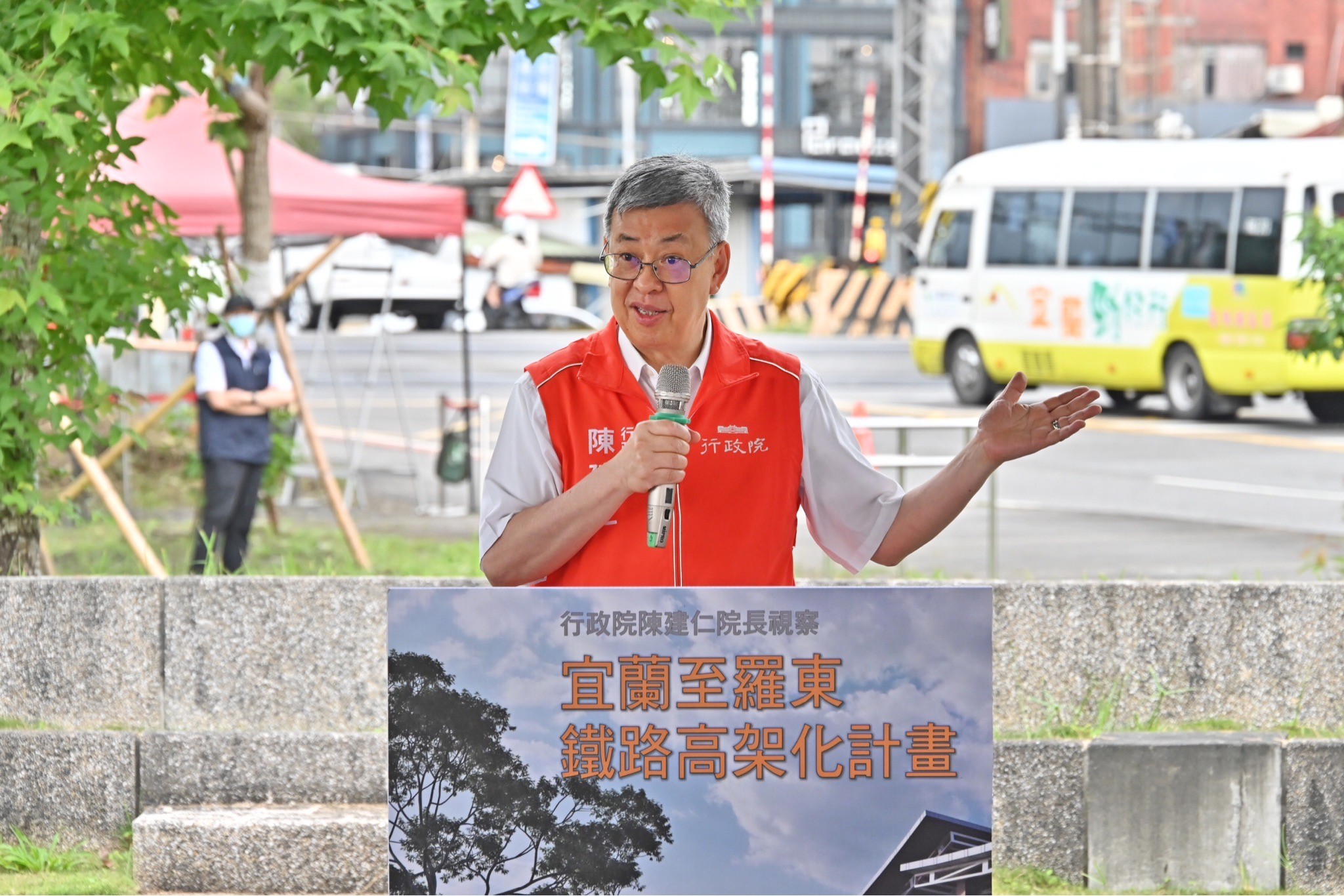 陳院長致詞時指出,行政院於109年10月26日核定「宜蘭至羅東鐵路高架化計畫」的可行性研究,預計高架化路線長約15.85公里,改善9處造成都市隔離及交通阻塞的平交道。此外,高架化計畫新增台鐵宜蘭新站,未來將與宜蘭高鐵站共構,使搭乘高鐵和台鐵民眾能無縫轉乘。對於相關經費,中央一定盡量予以協助。