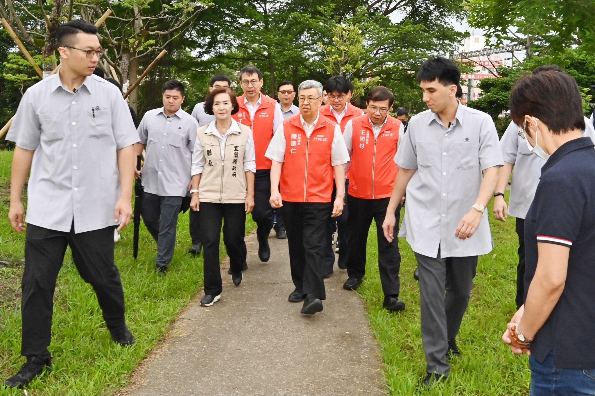 陳院長另表示,此行他一面聽取簡報說明,一面留意鄰近鐵路的列車行經數量,尤其是國立陽明交通大學附設醫院、臺北榮民總醫院員山分院門診部均在此區域,當救護車遇到鐵路平交道,勢必影響緊急搶救醫療,因此高架化有其必要性,計畫是123年完工,他期盼能愈早完工愈好,早日解決當地醫療問題。他也指出,近期行政院核定陽明交大醫院興建第二棟醫療大樓,顯示政府對於宜蘭縣民健康的關心。