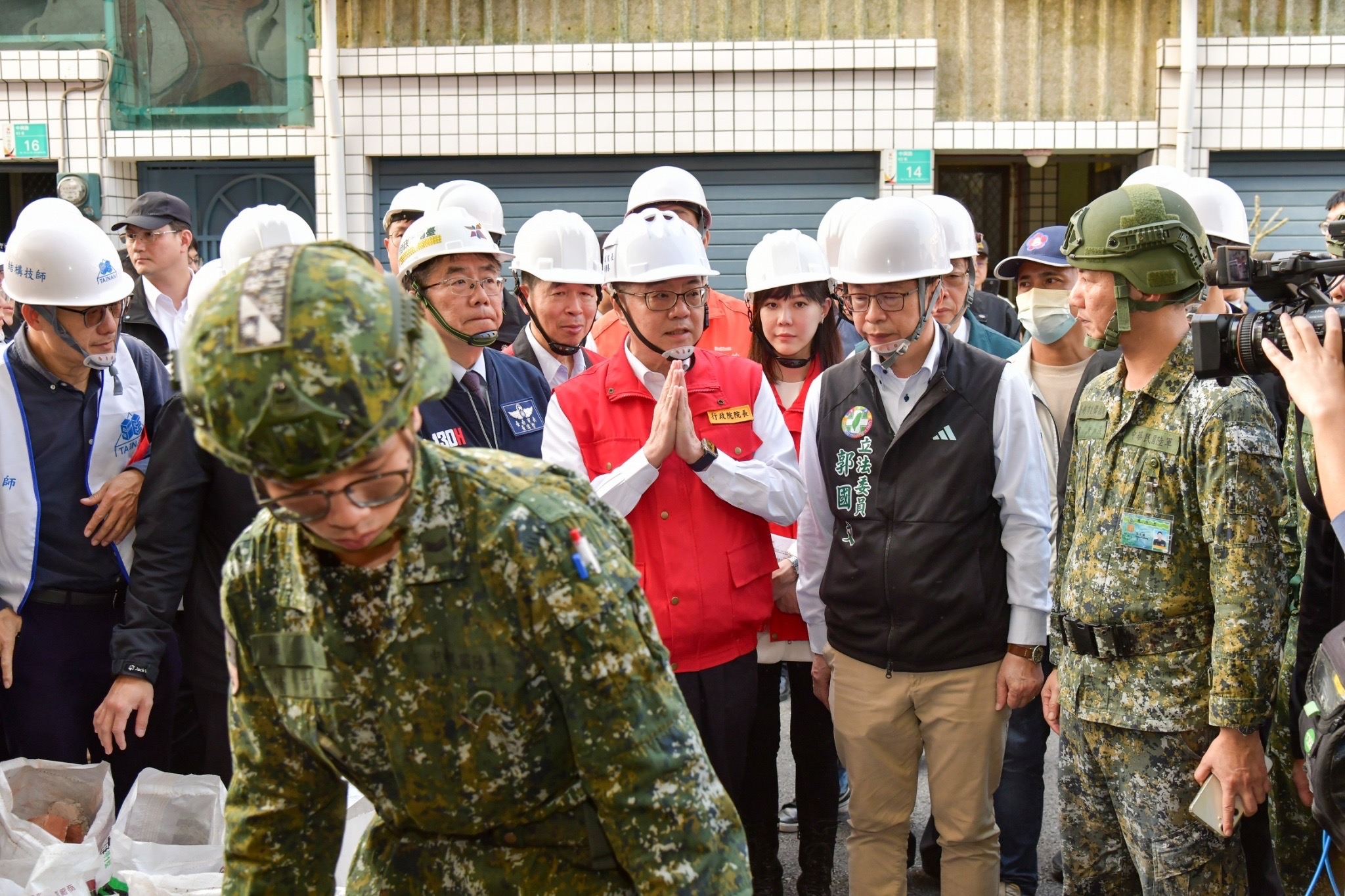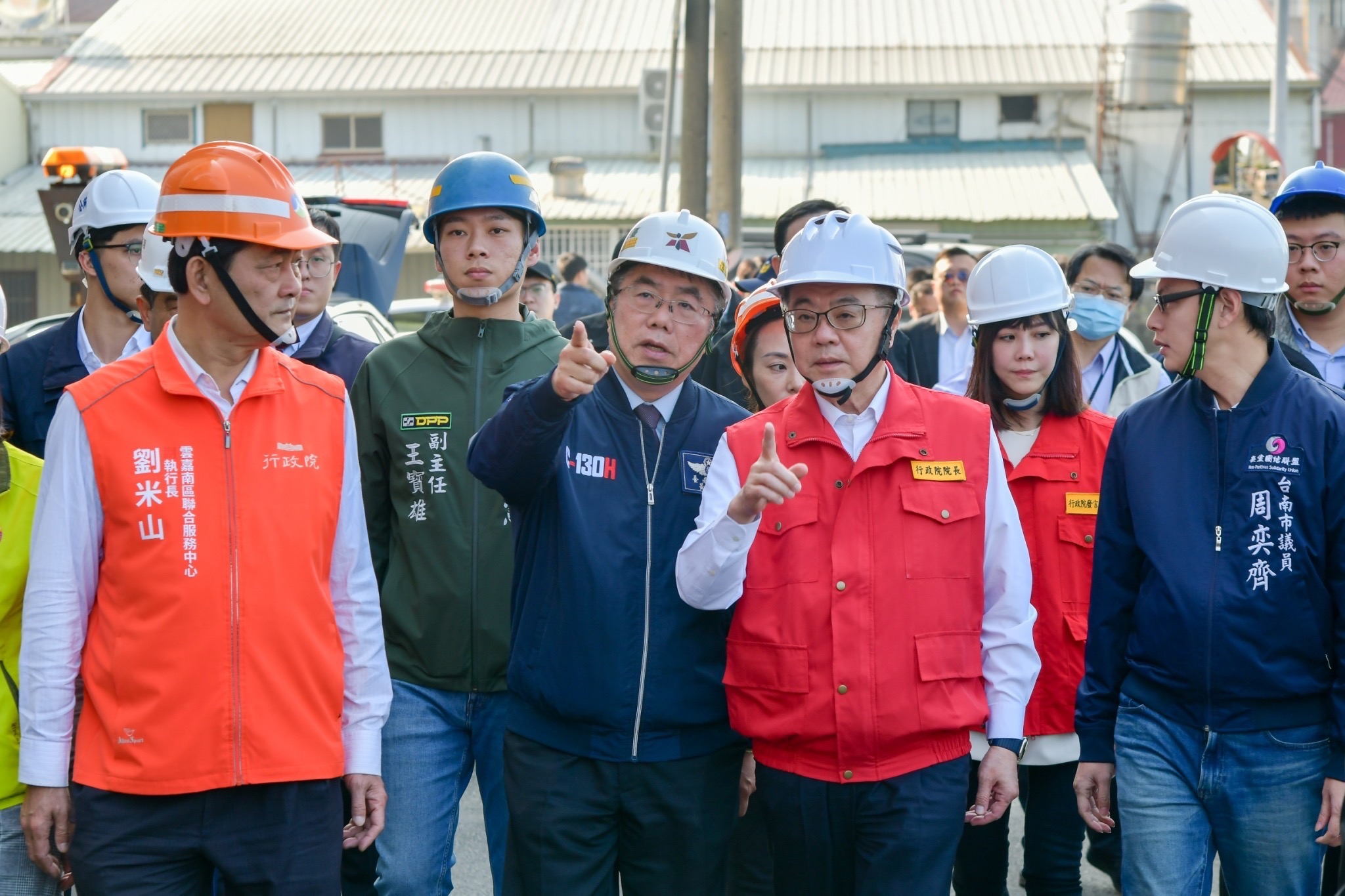 最後,卓院長前往臺南市楠西區民族路視察民房災損情形,並逐一慰問及傾聽災民心聲,同時也特別感謝國軍弟兄姐妹的辛勞。包括行政院李慧芝發言人、立法院郭國文立委、臺南市黃偉哲市長均陪同今日勘災行程。