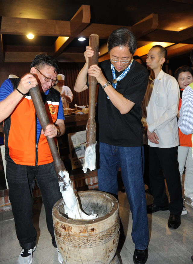 張院長稍後前往「手信坊創意和菓子文化館」,除參觀館內的文化走廊,瞭解手信坊一路走來的發展歷程,也親自動手製作桐花綠豆糕及麻糬,過程歡樂聲不斷,師傅對於做出來的成品,不吝稱讚院長的手藝很好。