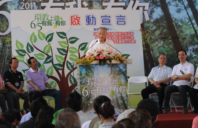 行政院長吳敦義今(5)日出席由環保署主辦的「環教路上有我、有你-6月5日環教法上路」活動致詞表示,今天是「世界環境日」,也是中華民國環境教育法正式生效的日子,具有非常重大的意義。他呼籲把環境的觀念,從很小的小朋友建立起來,一直到年長的朋友,大家都能一起來捍衛環境生態的平衡與和諧。