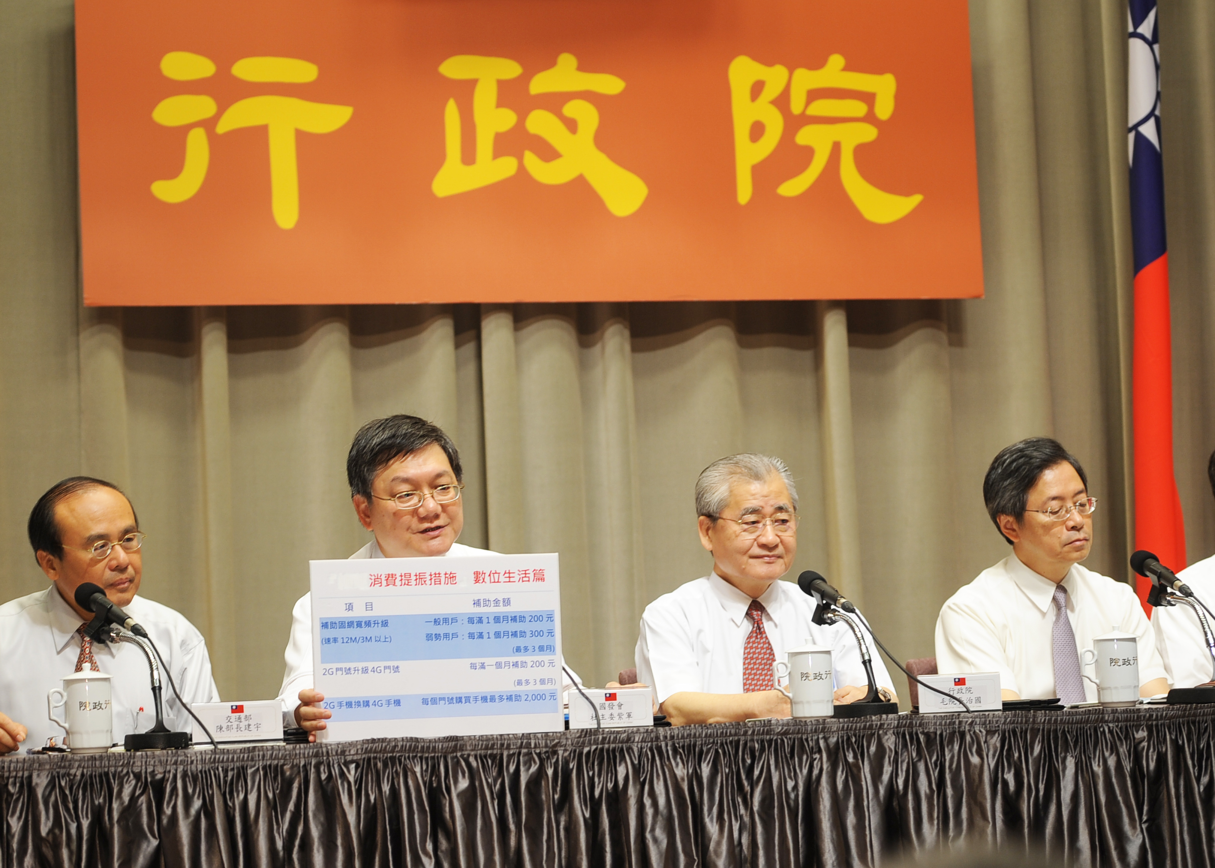 毛院長指出,「消費提振措施」範圍涵蓋「節能省水」、「數位生活」、「網購促銷」及「國民旅遊」等四大面向,並提出八大具體措施,包括:補助購置節能、省水產品、小型農機具,補助固網寬頻升級、2G升速4G及2G換購4G手機,網路聯合行銷活動(愛shopping),及補助國人住宿遊園精采行等(詳附件)。自11月7日起至明(105)年2月29日前,購買相關產品或實際參與旅遊,均可享有相關補助優惠。