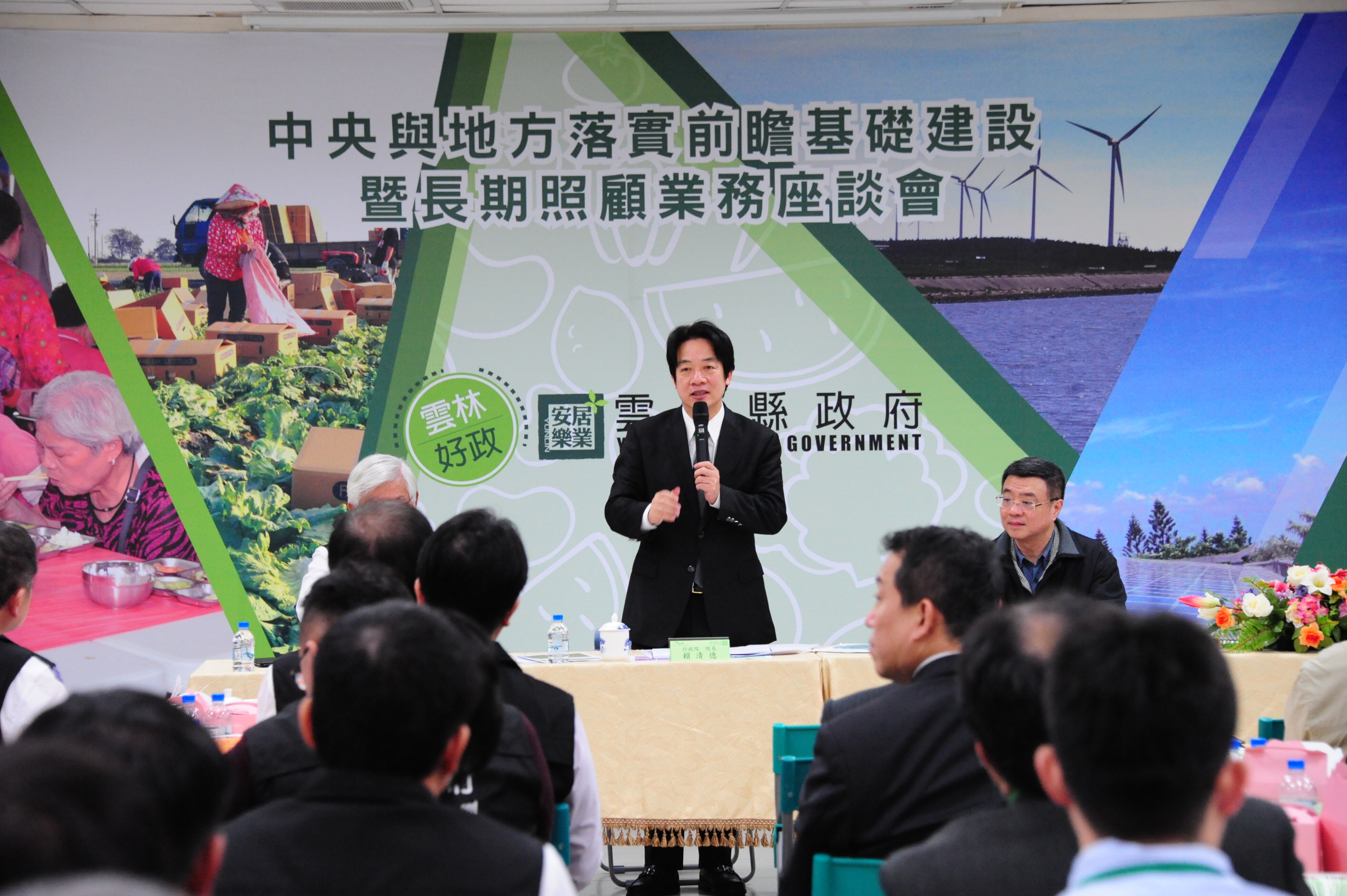 行政院長賴清德今(19)日率行政團隊至雲林縣出席「中央與地方落實前瞻基礎建設暨長期照顧業務座談會」時表示,此行主要為落實蔡英文總統「前瞻基礎建設」與「長照2.0」兩大政見,也為縮短中央與地方的距離,提高行政效率。對於縣政府所提意見,行政院都會列案追蹤,由部會在一周内彙送國發會,並在一個月後由他親自主持會議,檢視問題的解決進度。
