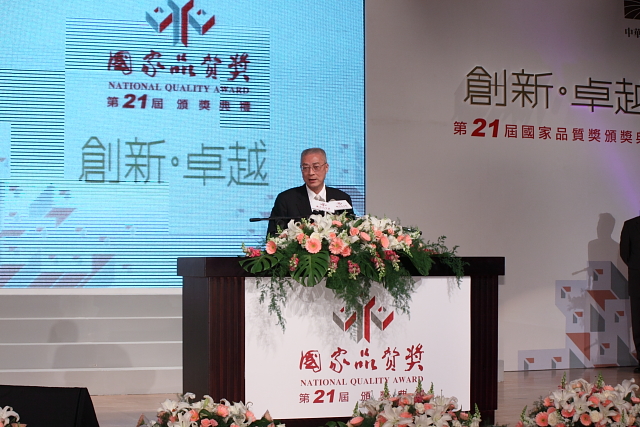 行政院長吳敦義今(20)日出席第21屆國家品質獎頒獎典禮時表示,政府透過立法及稅捐的鼓勵,展現國家對提升品質的決心。