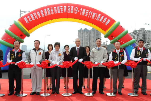 行政院長吳敦義今(24)日出席新北環河快速道路永和區至新店區通車典禮時表示,他非常樂意看到新北環河快速道路每隔一段時間都有一路段通車,相信該路段全線通車後一定能使新北市有更好的發展。
