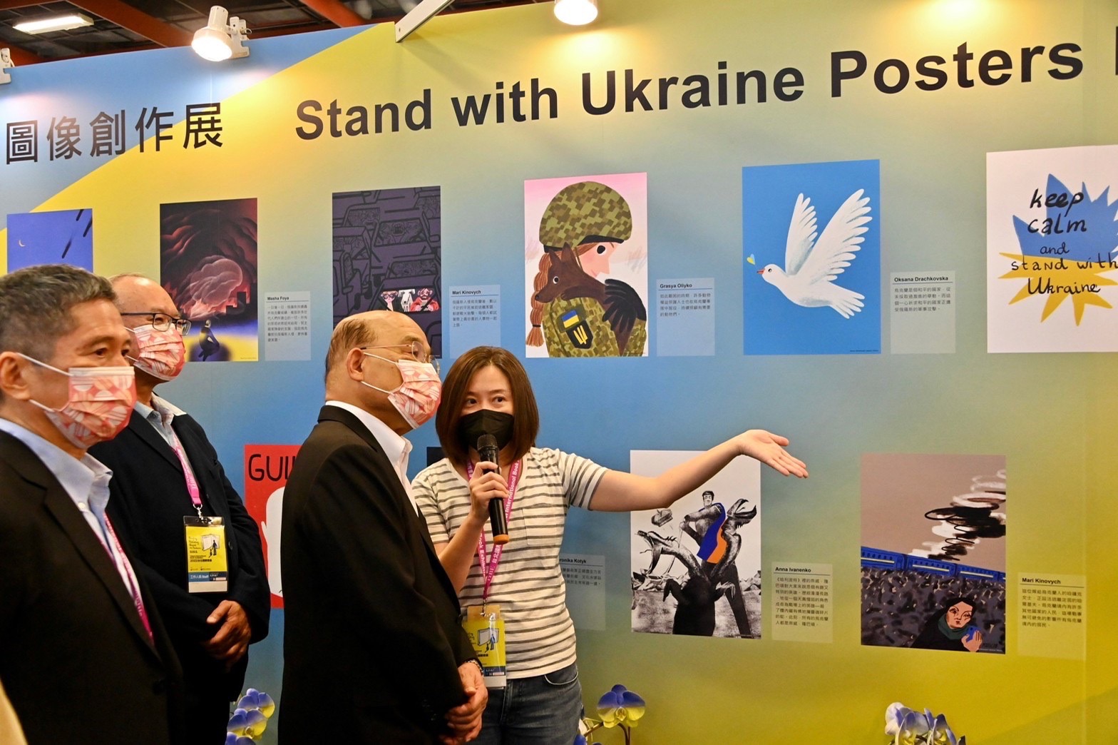 行政院長蘇貞昌今(5)日參觀「2022台北國際書展」,沿途聽取各展區出版社代表解說,瞭解台灣文學發展歷史、特色文學作家與作品,並不禁讚嘆文學世界多元豐富,可以讓前來書展的民眾徜徉在書香世界中,而愛書的蘇院長也自掏腰包購買35本書,展現濃厚的閱讀興趣,並盼透過政策的推動,戮力讓台灣書展、國內出版及文化獲得更好的發展,同時政府也會支持各種形式的台語文出版品,以協助國家語言的復振。