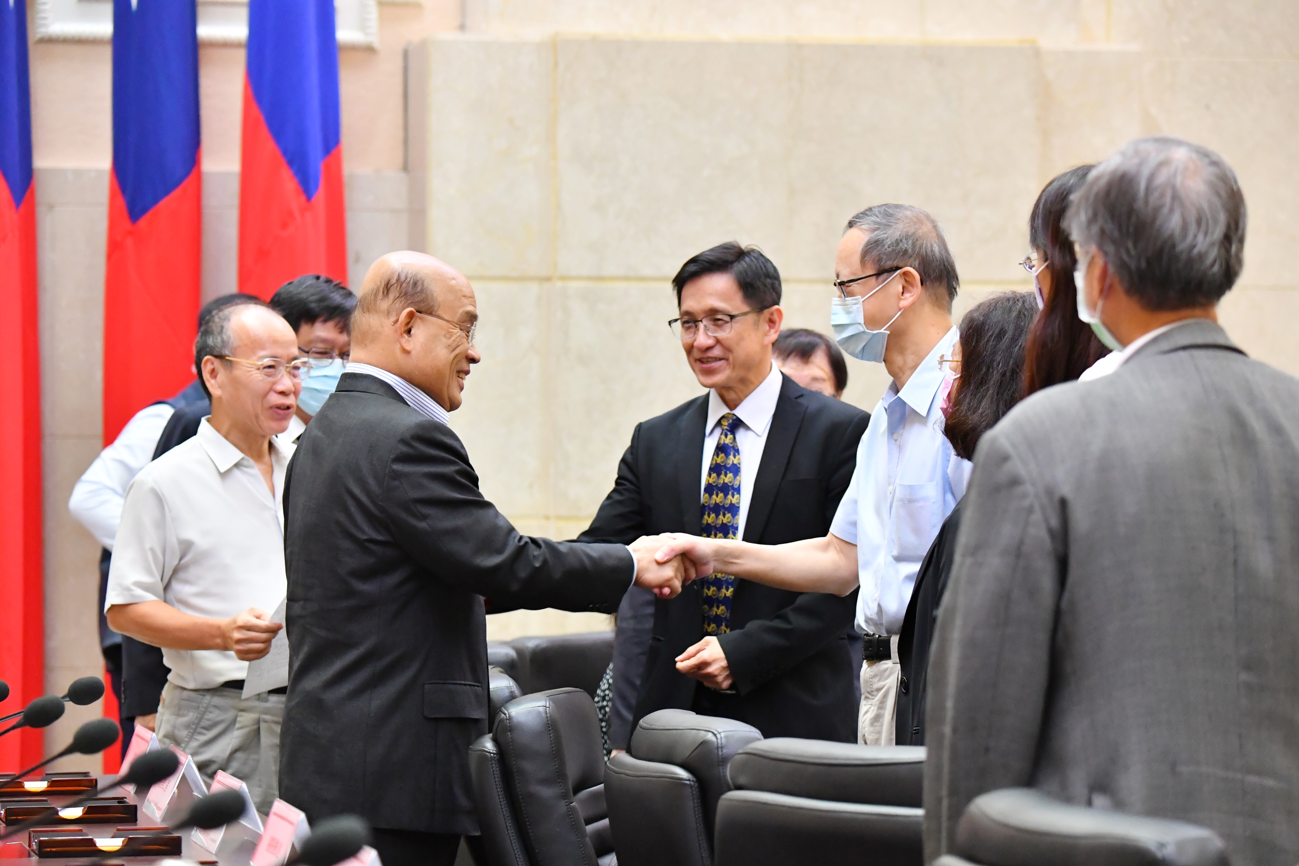 會議一開始,蘇院長即逐一向每一位永續委員握手致意,感謝委員們從各地撥冗與會,使今日會議得以順利召開。院長說,每一位委員都是長期致力於各領域的博學鴻儒或領導人,對於我國永續發展皆非常有見地與經驗,熟知政府運作,也知道業界、地方、相關單位的心聲。