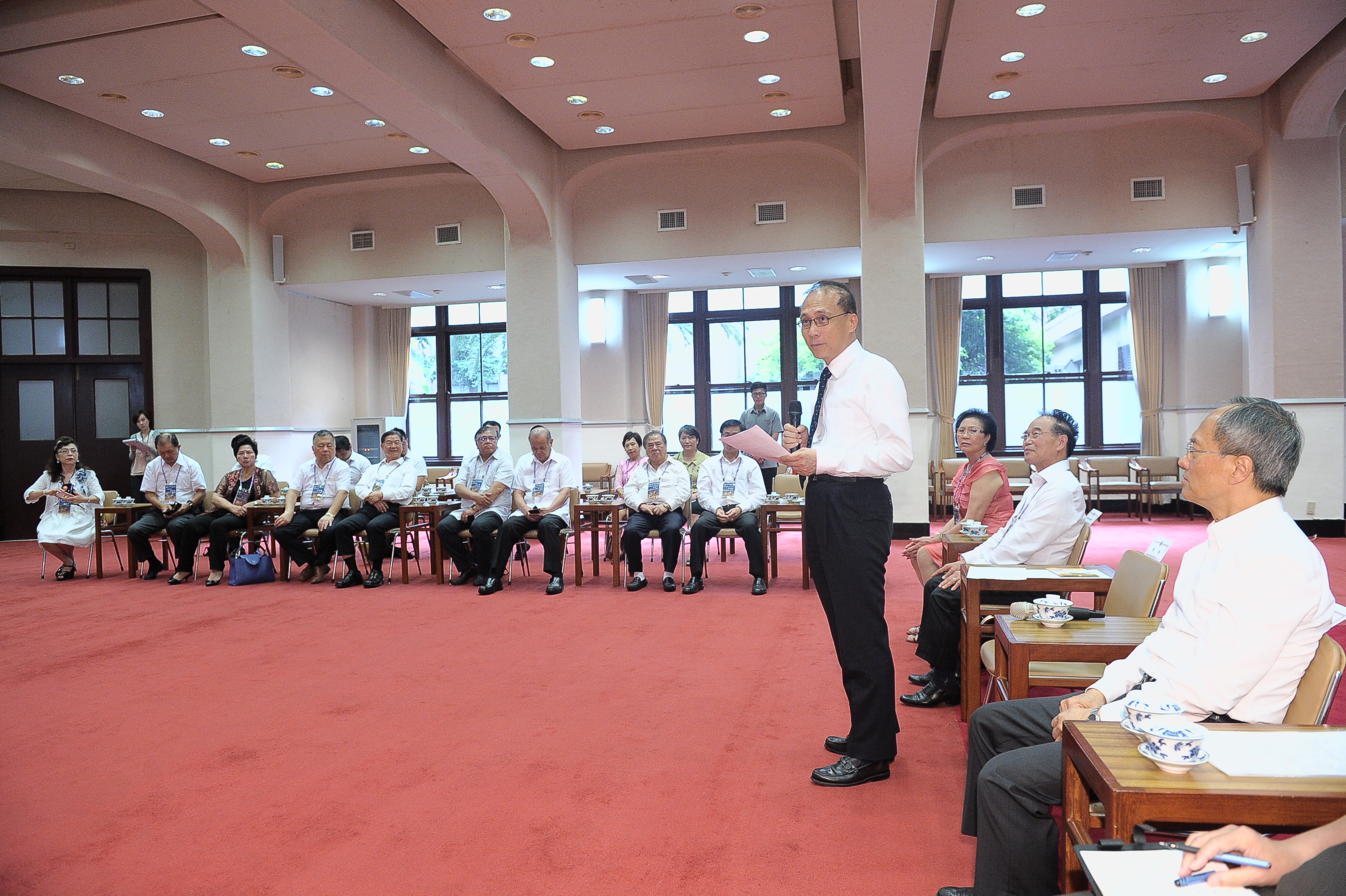 行政院長林全今(18)日於行政院接見「世界臺灣商會聯合總會第22屆回國訪問團」,盼臺商以臺灣為中心,將世界作為臺灣市場,幫助臺灣經濟走向全球化。