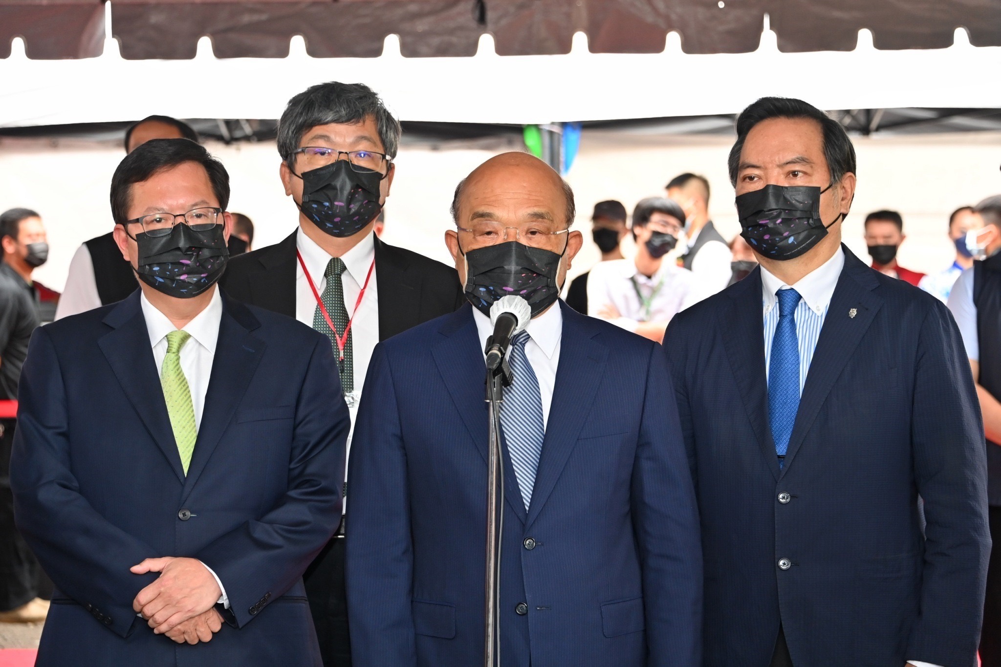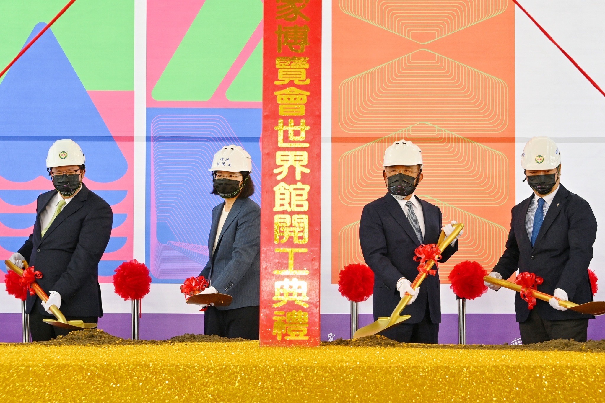 蘇院長與蔡總統抵達會場後,首先觀賞「紅瓦民族舞蹈團」帶來精彩的客家舞蹈表演,並聽取桃園市政府相關工程簡報,現場亦播放動畫影片,呈現未來世界館場館建築特色、展區規劃及周邊景觀設計。隨後,院長於開工祝禱後提起金鏟,起鍬三鏟,完成動土儀式,並與總統及現場貴賓合影留念。