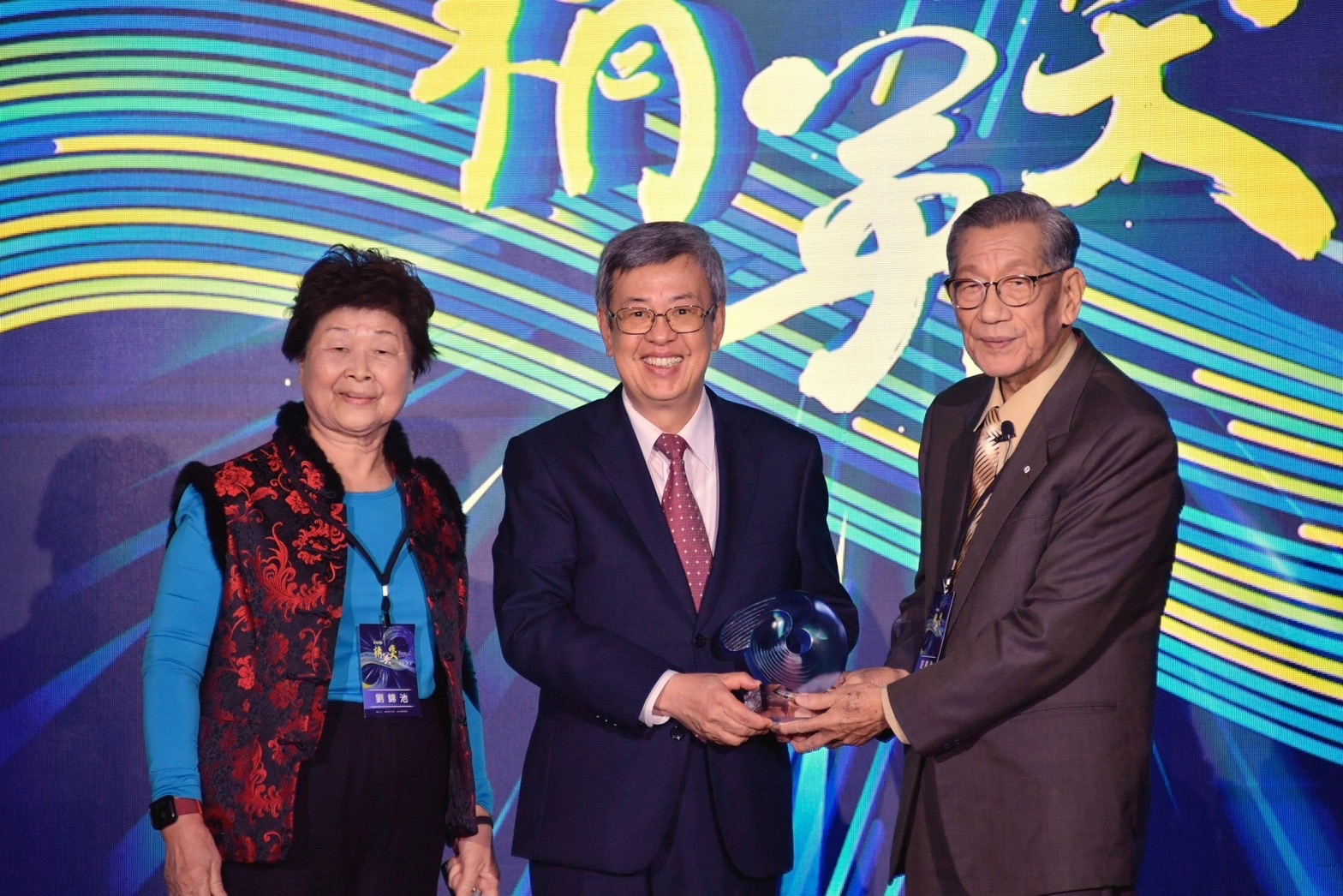 陳院長到場後,先與行政院林子倫發言人、教育部潘文忠部長、林騰蛟次長、體育署鄭世忠署長、入圍選手及現場貴賓大合影留念,並一同觀賞今年榮獲「特別獎」得主許皓鋐選手,以及「終身成就獎」得主劉錦池教練的得獎影片;致詞結束後,院長頒發獎座予許皓鋐選手及劉錦池教練,並聆聽兩位得獎者的得獎感言。