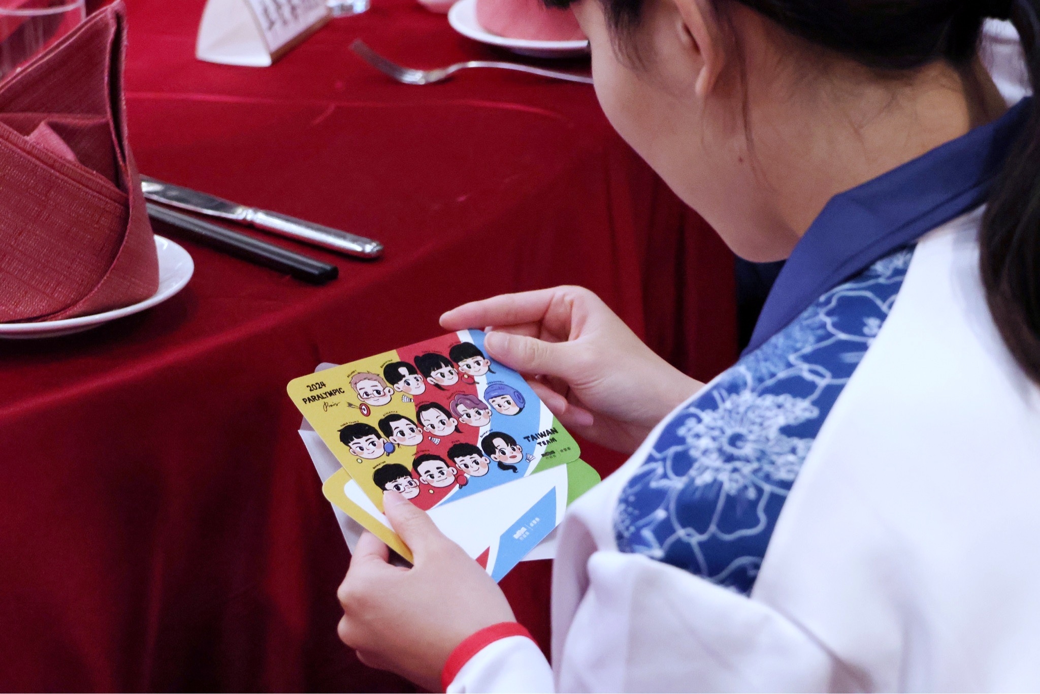 卓院長到場後,首先觀賞我國代表團參與本屆巴黎帕運賽事的回顧影片。致詞結束後,由陳柏諺、田曉雯、林姿妤三位桌球選手分別致贈帕運吉祥物及簽名會旗予卓院長;卓院長也偕同鄭麗君副院長、帕運代表團穆閩珠團長、張富貴總領隊與代表團成員們分批合影留念。隨後,卓院長舉杯祝賀,並慰勉所有代表團成員的辛勞及傑出表現,同時也與選手們共進午餐,席間並逐桌敬酒,場面熱絡。