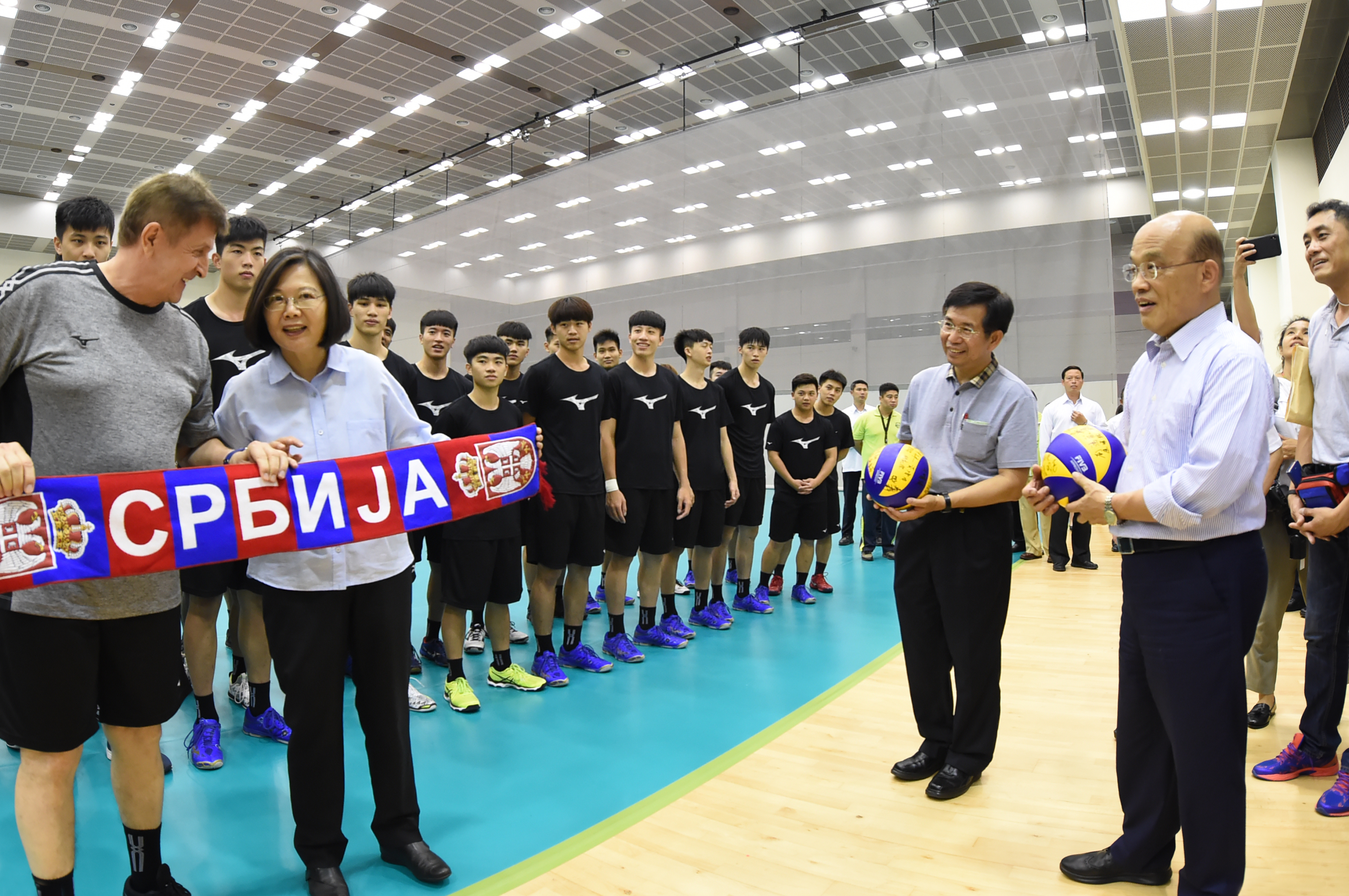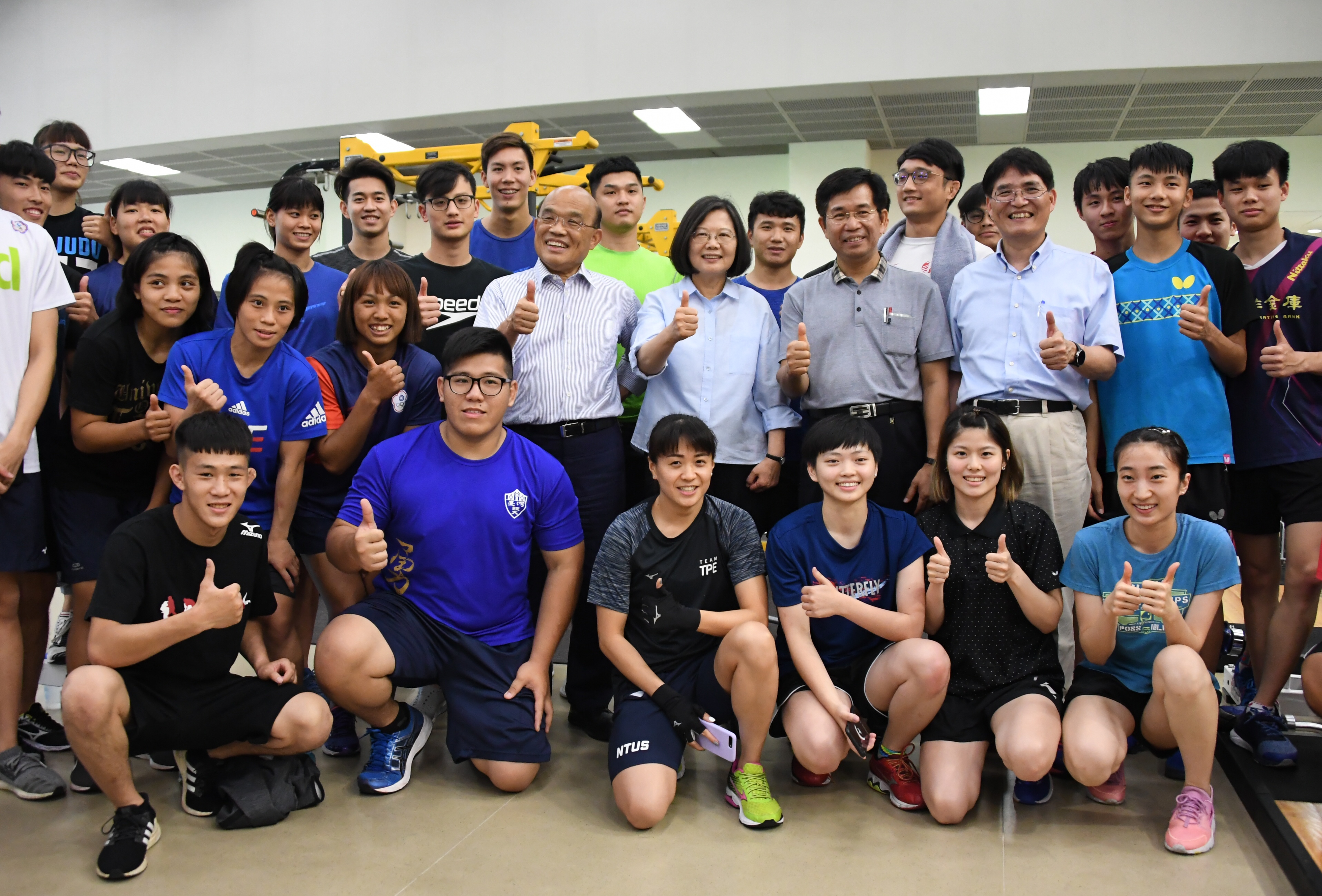 蘇院長指出,為迎戰2020年東京奧運,行政院編列3億元專款,推動「東京奧運菁英選手培訓計畫」,針對實際需求,制定一選手一專案的客製化培訓,協助成立訓練、後勤支援團隊,現在已有10個運動種類、28位菁英選手實施專案培訓,盼選手保重自己,維持最好體能,做好賽前整備。