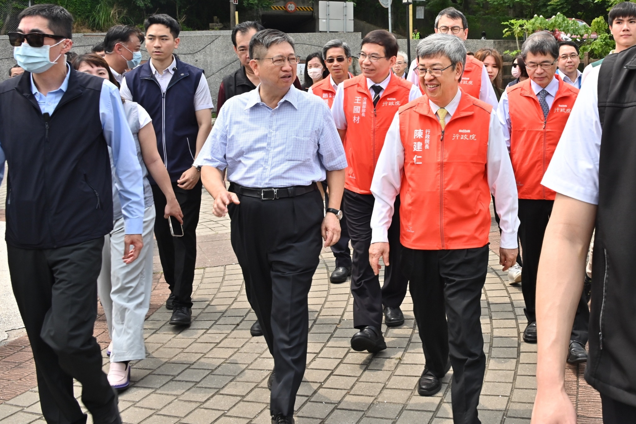 陳院長於致詞結束後,偕同行政院李孟諺秘書長、林子倫發言人、交通部王國材部長、新竹縣楊文科縣長、新竹縣議會何建樺議員、歐陽霆議員、竹北市民代表曾玉菱、范格菱等人一同進行現地視察,聽取趙局長解說,了解國道1號楊梅至頭份段拓寬工程在路堤段、高架段及隧道段的相關規劃。