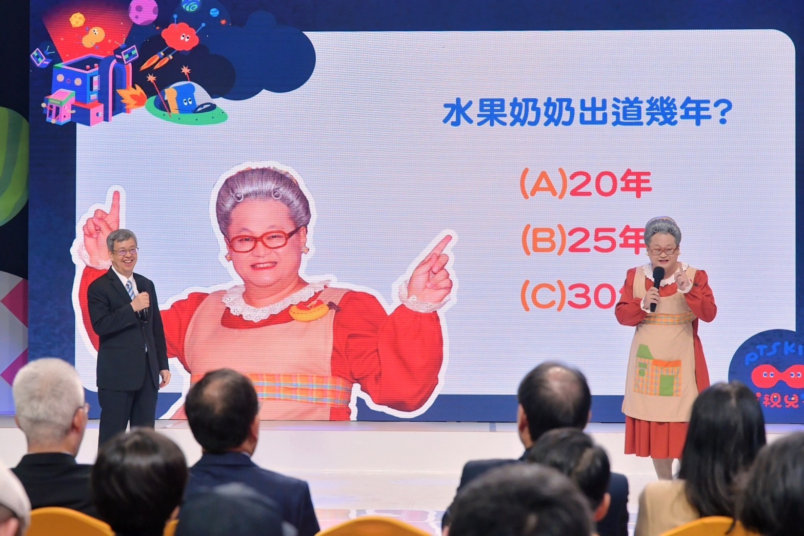 致詞結束後,陳院長與本場記者會主持人、知名YouTuber視網膜進行快問快答,透過邏輯推理及對公視節目的了解,院長從3選1的選項中,順利答對公視《古典魔力客》節目主持人為黃韻玲,以及公視入圍第58屆金鐘獎「少年節目獎」的節目名稱為《換個爸媽過幾天》;另外,扮演「水果奶奶」角色的演員趙自強也向院長提問「水果奶奶出道幾年?(20年、25年或30年)」院長則準確答出「出道25年」;最後主持人視網膜現場加碼提問其實際年齡,院長的回答與實際歲數僅相差1歲,問答過程趣味橫生。隨後,院長與行政院林子倫發言人、文化部史哲部長、公共電視文化事業基金會胡元輝董事長、徐秋華總經理、財團法人原住民族文化事業基金會瑪拉歐斯董事長、公視台語台呂東熹台長,以及客家電視台向盛言台長等貴賓,一同進行啟動儀式並合影留念。