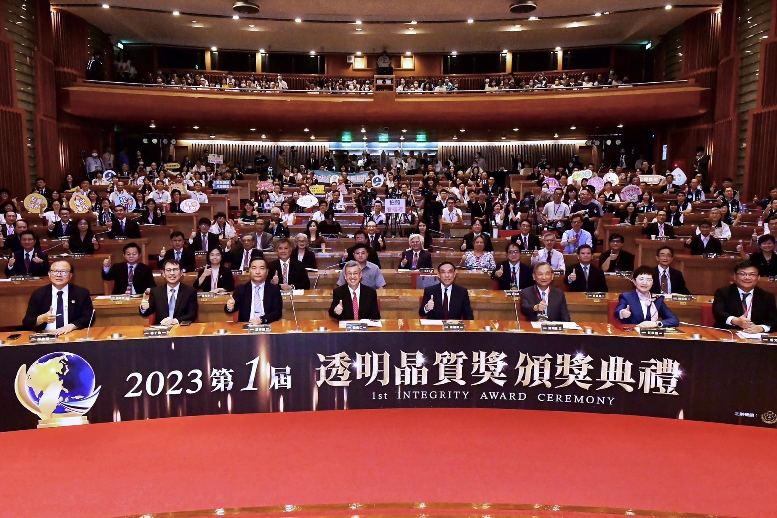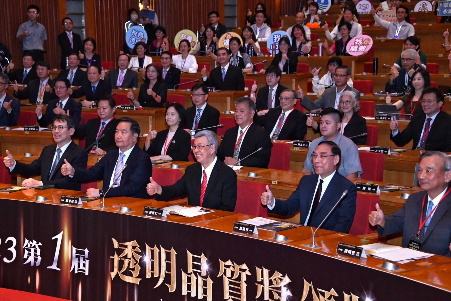 行政院長陳建仁今(8)日出席「第1屆透明晶質獎頒獎典禮」,頒獎表揚10個得獎團隊,期盼大家持續肩負廉政治理的標竿,形塑廉政典範的重任,傳承「透明晶質獎」的價值。院長表示,「廉能」與「透明」是民主國家的政府對於人民不變的承諾,去(2022)年我國在國際透明組織公布的清廉印象指數(Corruption Perceptions Index, CPI)評比,排名全球第25,再創歷史新高,期盼未來有更多團隊在首長卓越領導下,展現廉能治理的正向能量,讓世界看見更廉能的臺灣。