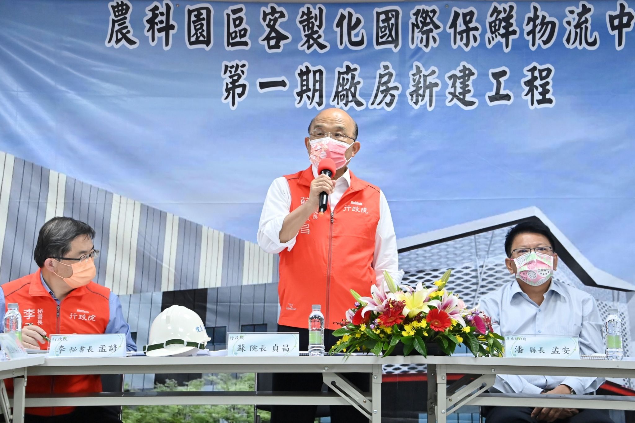 蘇院長表示,今日視察國際保鮮物流中心,他要對大家的努力表示肯定及感謝,只要屏東縣、農民朋友有需要,農委會都會大力協助,加速推動。隨後,院長進行現地視察,瞭解保鮮物流中心基地施工進度,並關心建築及交通出入動線等是否符合廠商需要。