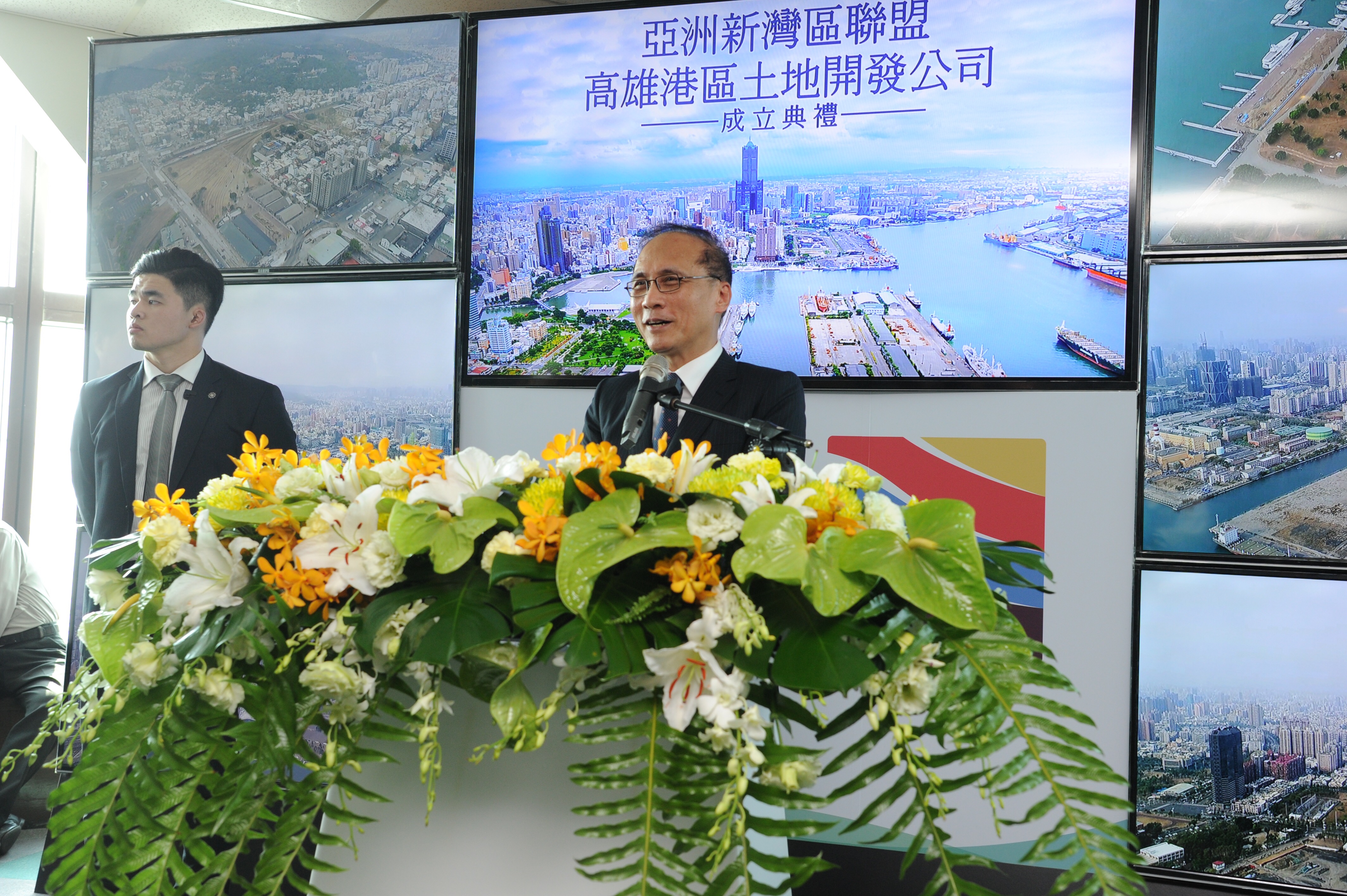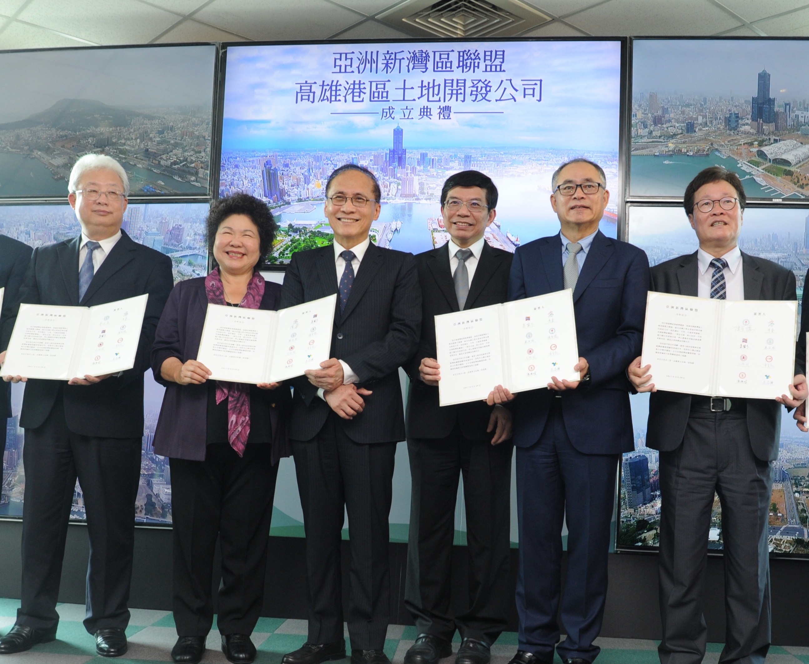 行政院長林全今(29)日出席「亞洲新灣區聯盟暨高雄港區土地開發公司成立」典禮時表示,高雄市政府和台灣港務公司合資的「高雄港區土地開發公司」今天正式成立,該公司並和各國營企業組成「亞洲新灣區聯盟」,共同進行新灣區的開發與建設,期許能為社會創造利益,奠定高雄市邁向未來新都市的基礎。