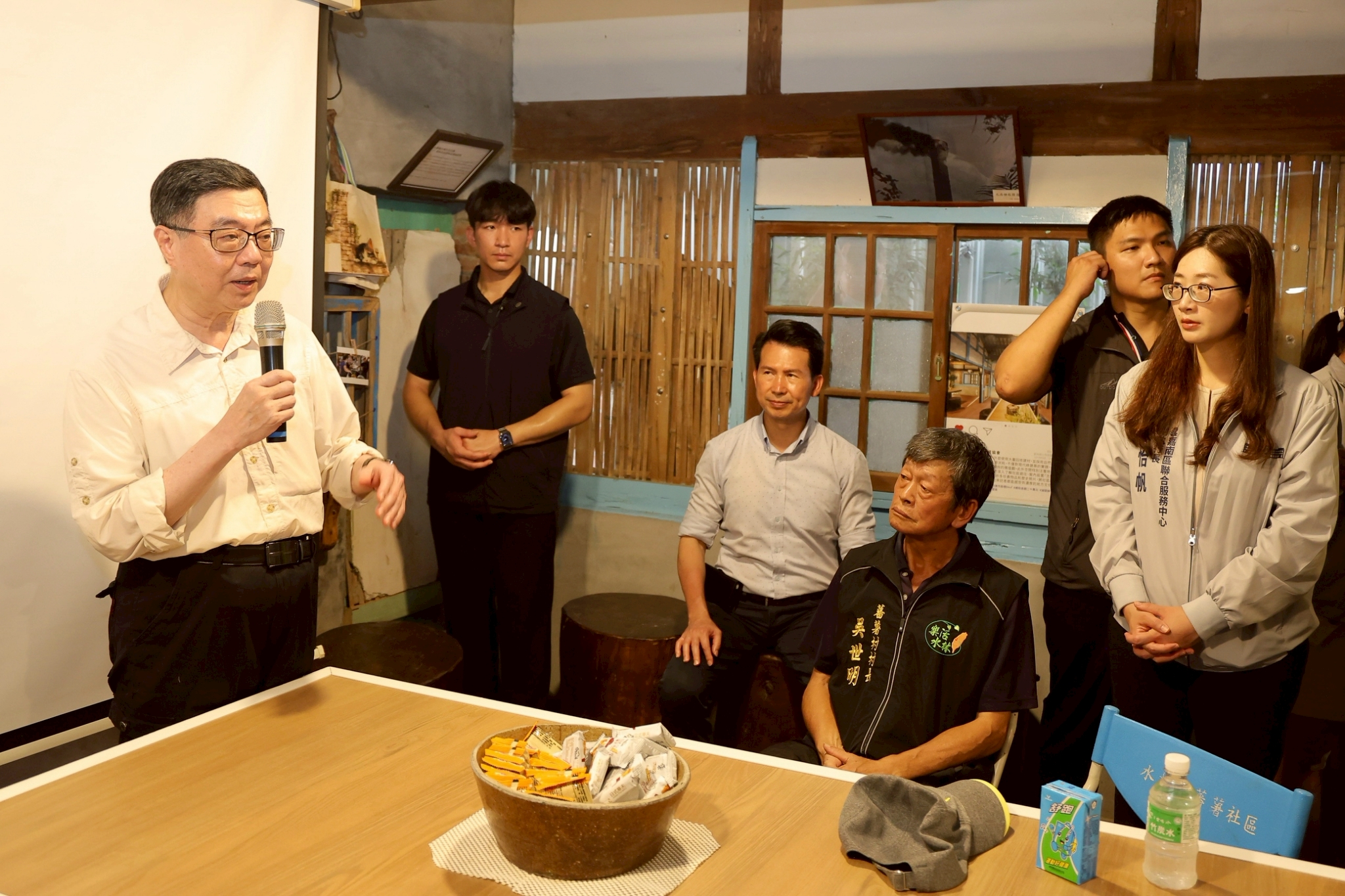 卓院長接續前往水林鄉蕃薯村關心民宅淹水情形,並聽取蕃薯村吳世明村長簡報災情。卓院長說,在場幾位村長都來自此次遭受嚴重淹水損害的區域,但依舊保持樂觀心態,及為民服務的精神,努力照顧村民,令人敬佩。