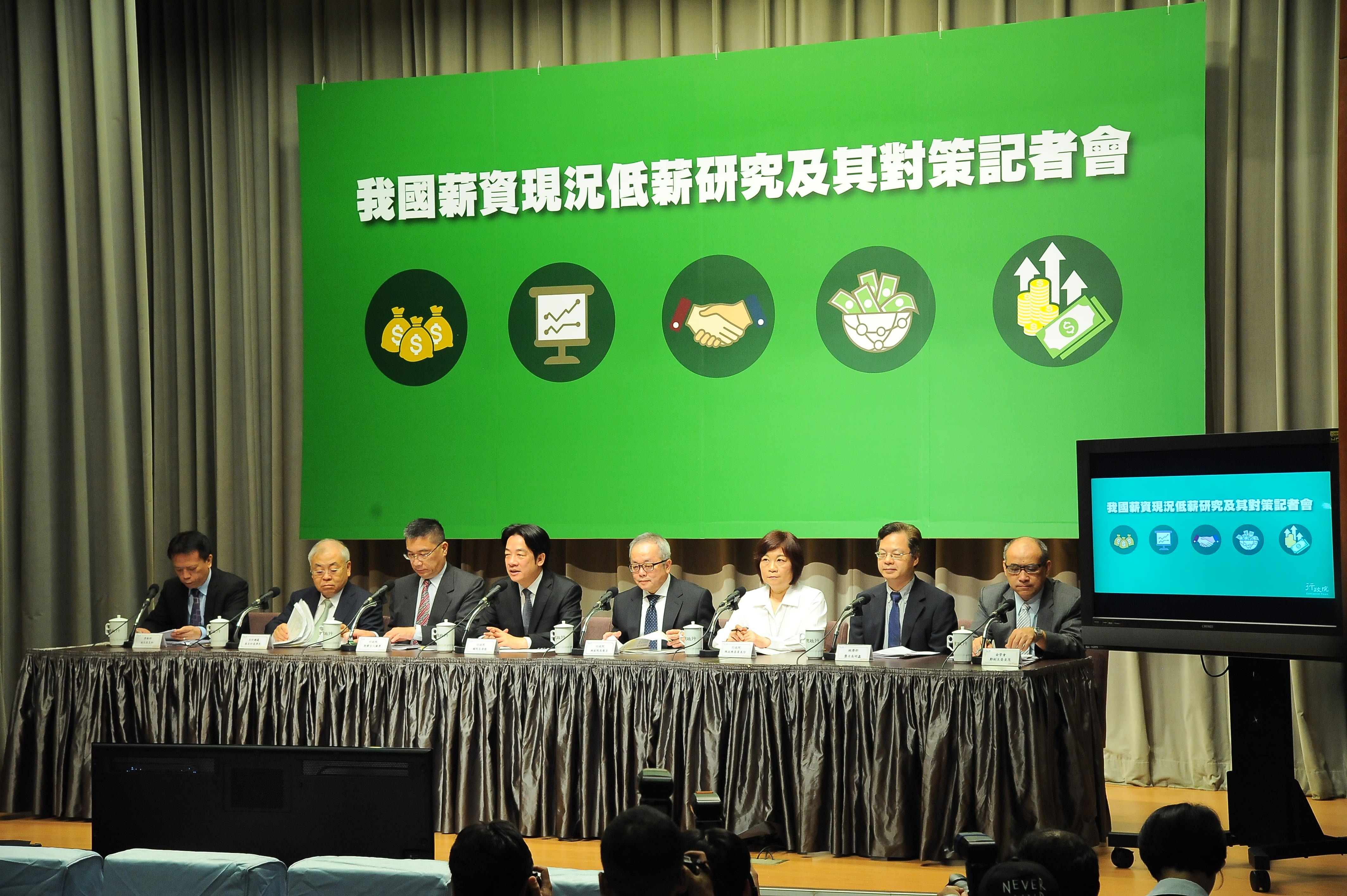 為解決社會關注的低薪問題,行政院長賴清德今(14)日上午親自召開「我國薪資現況、低薪研究及其對策」記者會並表示,蔡英文總統非常重視低薪問題,行政院提出「提高低薪族薪資之行動方案」,包括公部門主動解決低薪、薪資列入政府採購及頒發獎項之加分項目、鼓勵企業加薪、薪資透明化及提高時薪等5大短期措施,以及5大中長期因應措施,盼有效提升薪資,經濟持續發展。