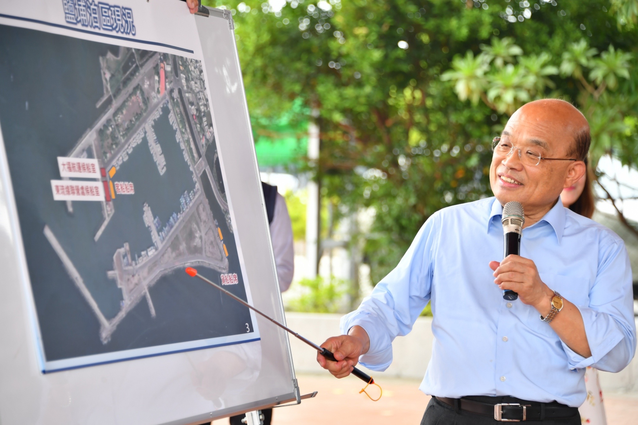 另有關潘縣長提出漁港拍賣場、整網場等設施需求,蘇院長說,鹽埔漁港的規劃很重要,要讓交通船、漁船方便、出入也方便,請交通部航港局了解漁會及當地鄉親的需求,做好前置作業等規劃工作,一次處理好,讓大家方便。至於是否多建一個船席位,則依專家意見辦理。