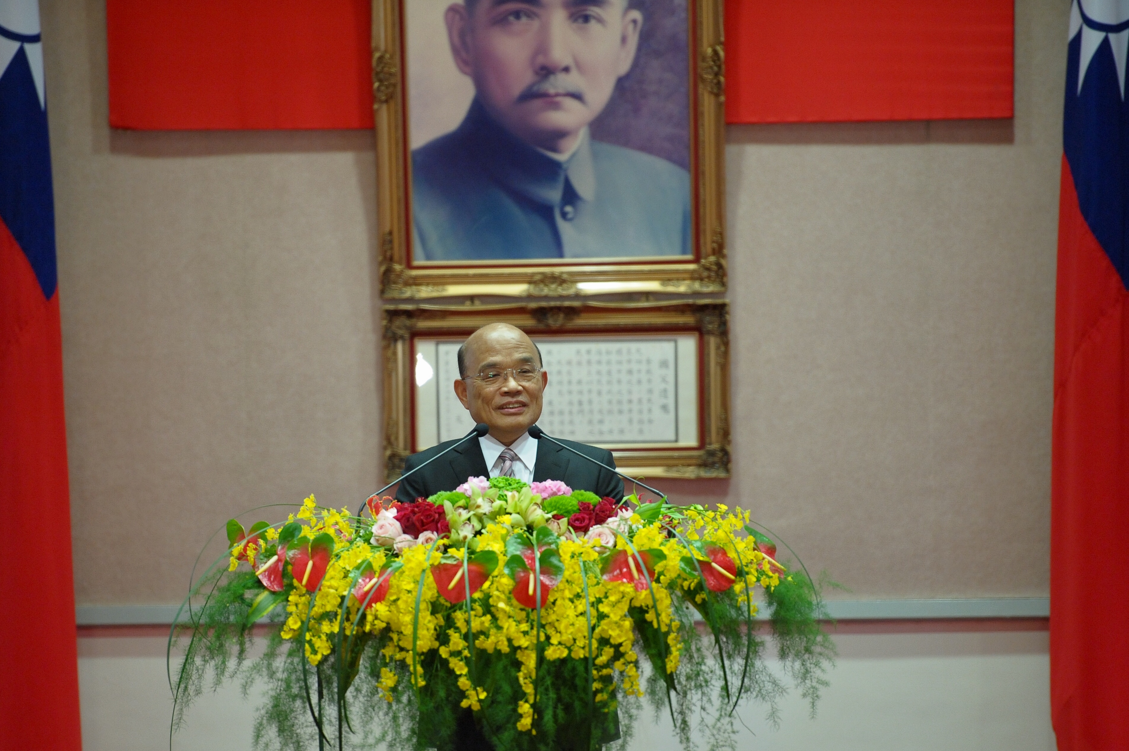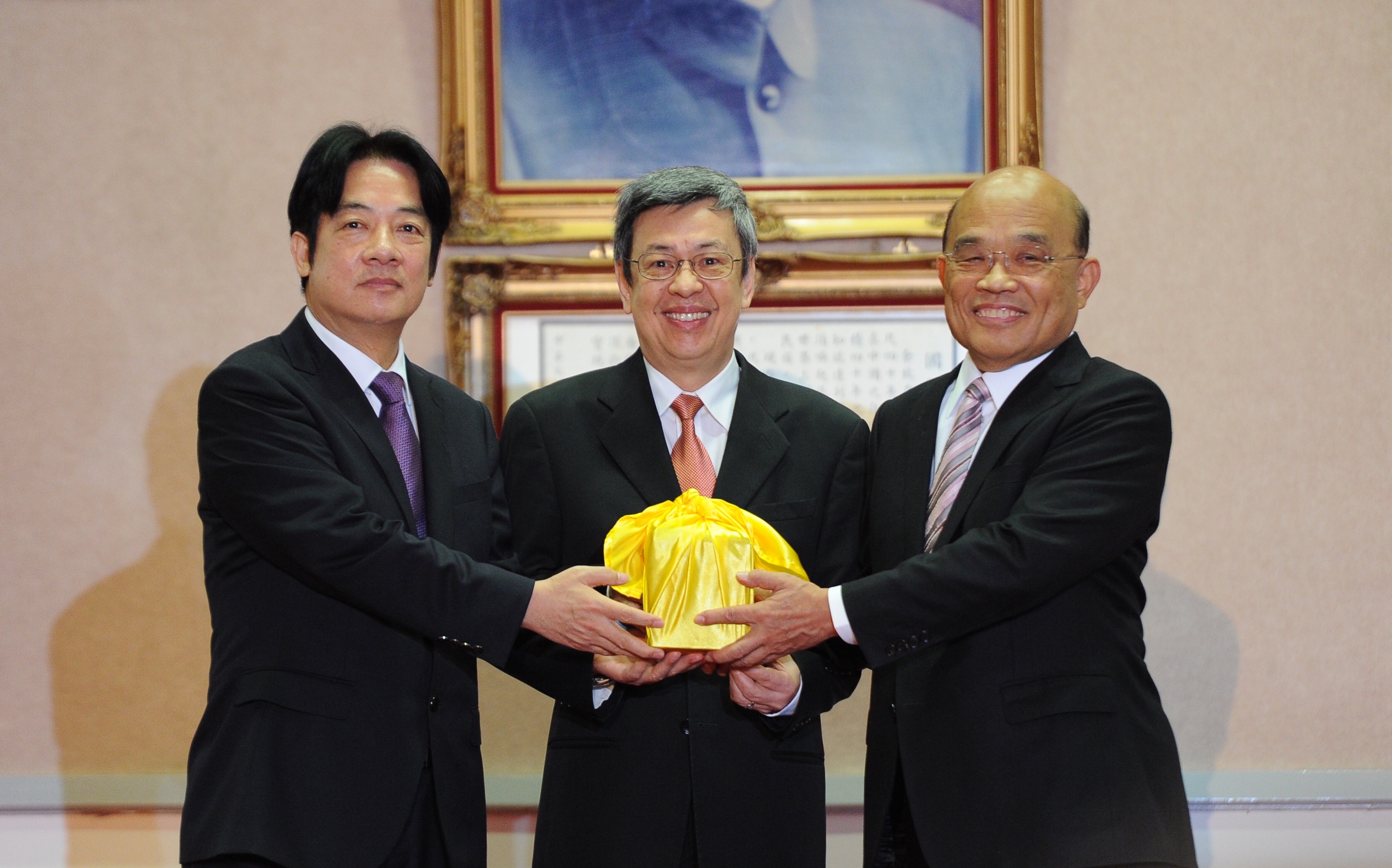 蘇院長表示,接下行政院長印信,內心戒慎恐懼,因曾任院長,知道印信的沈重,也特別感謝賴院長過去一年多來為國家的貢獻、為人民努力,擘畫出亮麗的成績。