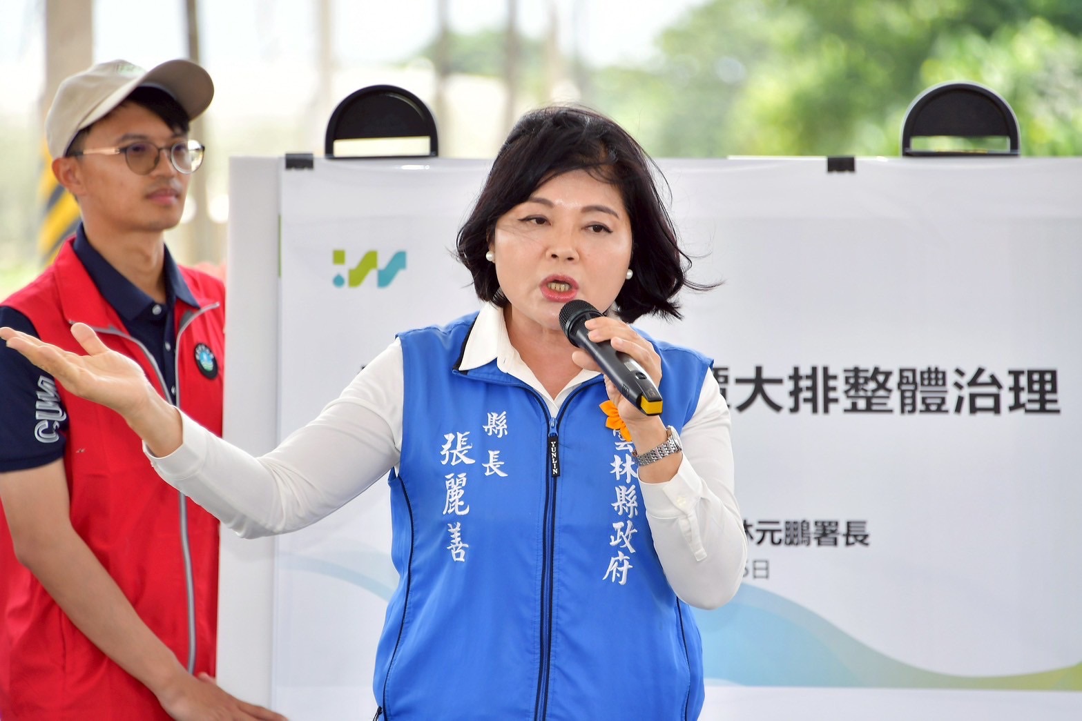 此行,卓院長先聽取經濟部水利署林元鵬署長說明延潭大排整體治理情形,並於致詞結束後,與行政院李慧芝發言人、經濟部郭智輝部長、行政院雲嘉南區聯合服務中心陳怡帆副執行長、劉建國立委、張嘉郡立委、雲林縣張麗善縣長等人,進行現地視察。