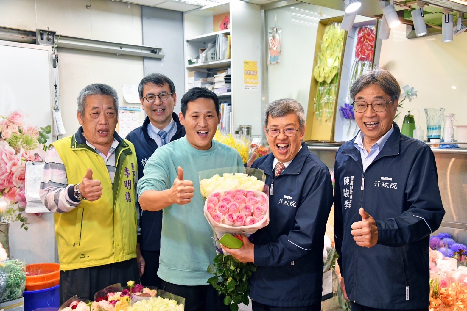 陳院長提到,相較於國際上花卉產品,臺灣的百合花、銀柳、菊花、劍蘭及洋桔梗等花卉品質毫不遜色,他要感謝所有花卉批發市場人員的辛勞,讓臺灣花卉能夠行銷全球,成為臺灣的「隱形冠軍」,並進一步促進臺灣農業發展。院長也呼籲國人能夠多多採購國產花卉,為家中增添喜氣,並祝福臺北花卉批發市場所有攤商在新的一年生意興隆、龍年行大運。