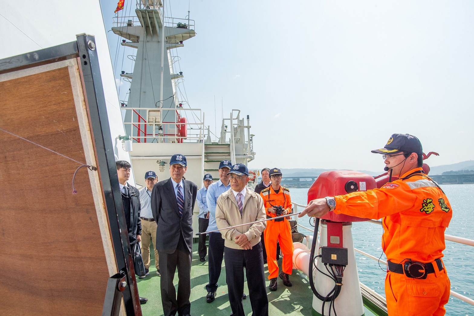 蘇院長強調,感謝海洋委員會同仁盡心盡力防止非洲豬瘟疫情入侵。「防疫視同作戰」,若疫情進來台灣,將可能影響養豬產業,造成逾2,000億元的損失。由於大家嚴謹把關,雖然因此增加工作,但大家努力保護國土安全做到滴水不漏,對此表示嘉勉與感謝。
