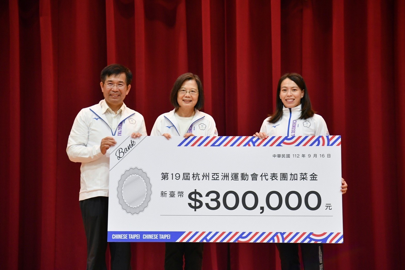陳院長表示,蔡英文總統上任後,政府對於體育運動的支持不遺餘力,其中針對奧亞運競技運動選手培訓經費,更從2016年的16億元,增加至2023年的43.7億元,同時也針對奧運選手提供黃金計畫的專案培訓,為選手打造優質訓練環境,讓他們能夠為國爭光,而各個選手在競技場上傑出的表現,也相當振奮人心,讓全國人民對所有運動選手更有信心。