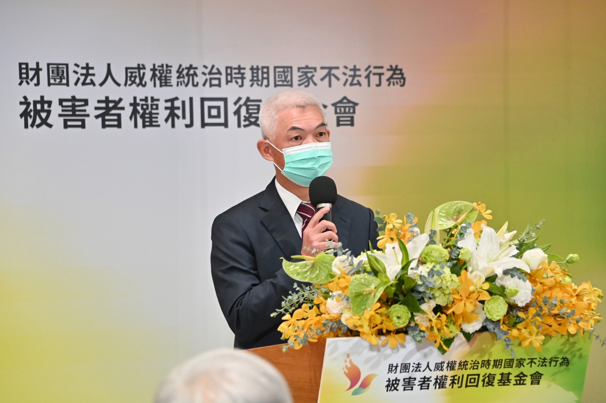 陳院長進一步指出,政府也分別於2017年及2019年公布《國家人權博物館組織法》及《政治檔案條例》,並辦理口述歷史、人權教育等活動,同時亦加速徵集、開放政治檔案;此外,去年亦完成立法公布《威權統治時期國家不法行為被害者權利回復條例》,依據該條例設置而於今日「威權統治時期國家不法行為被害者權利回復基金會」正式揭牌,更是一項重要的里程碑,未來政府將從賠償,而非補償的角度,依法落實對政治受難者及其家屬之權利回復。