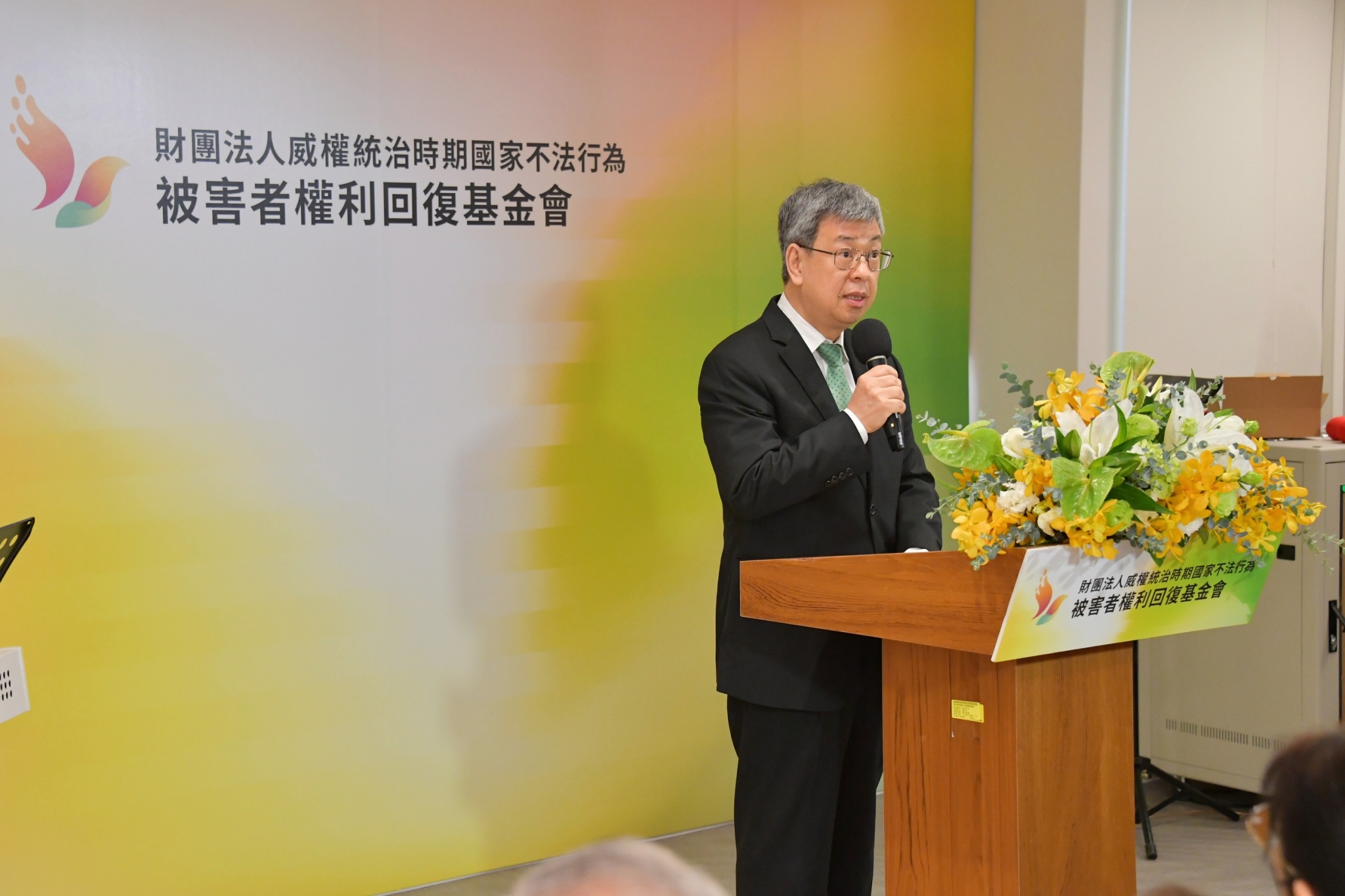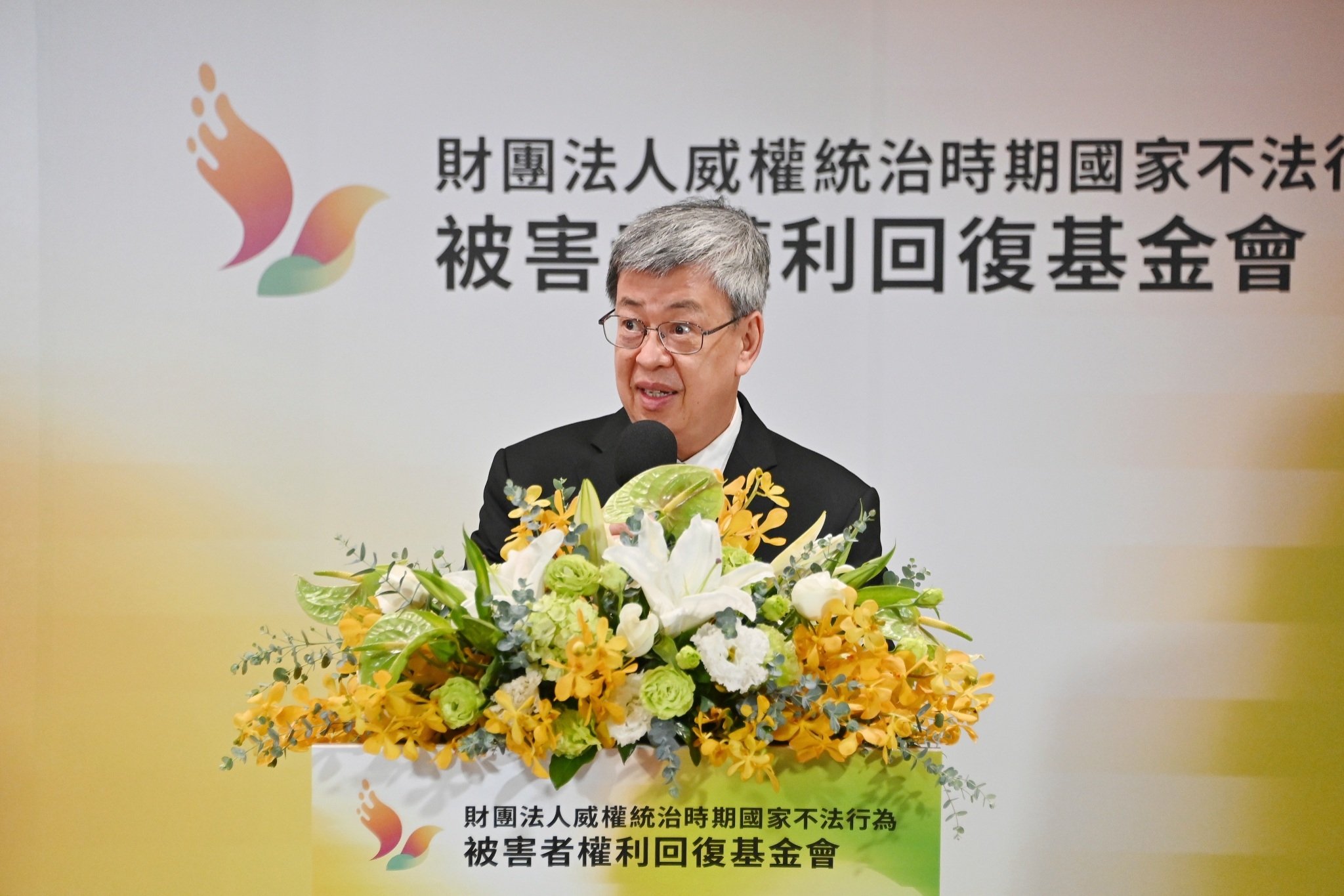行政院長陳建仁今(18)日出席「財團法人威權統治時期國家不法行為被害者權利回復基金會揭牌典禮」時,先向所有受難前輩及眷屬道聲辛苦了,因為大家的努力與付出,成功為臺灣推開民主的大門,而彌補過去威權政府的過錯,即是現在政府必須承擔的重責大任。因此蔡英文總統上任後,即積極透過完善法制、設置「促進轉型正義基金」、推動人權教育、開放政治檔案等方式落實轉型正義,而今日該基金會正式揭牌,更是轉型正義重要的里程碑,政府將全力落實對政治受難者及其家屬之權利回復,實現社會公平正義。