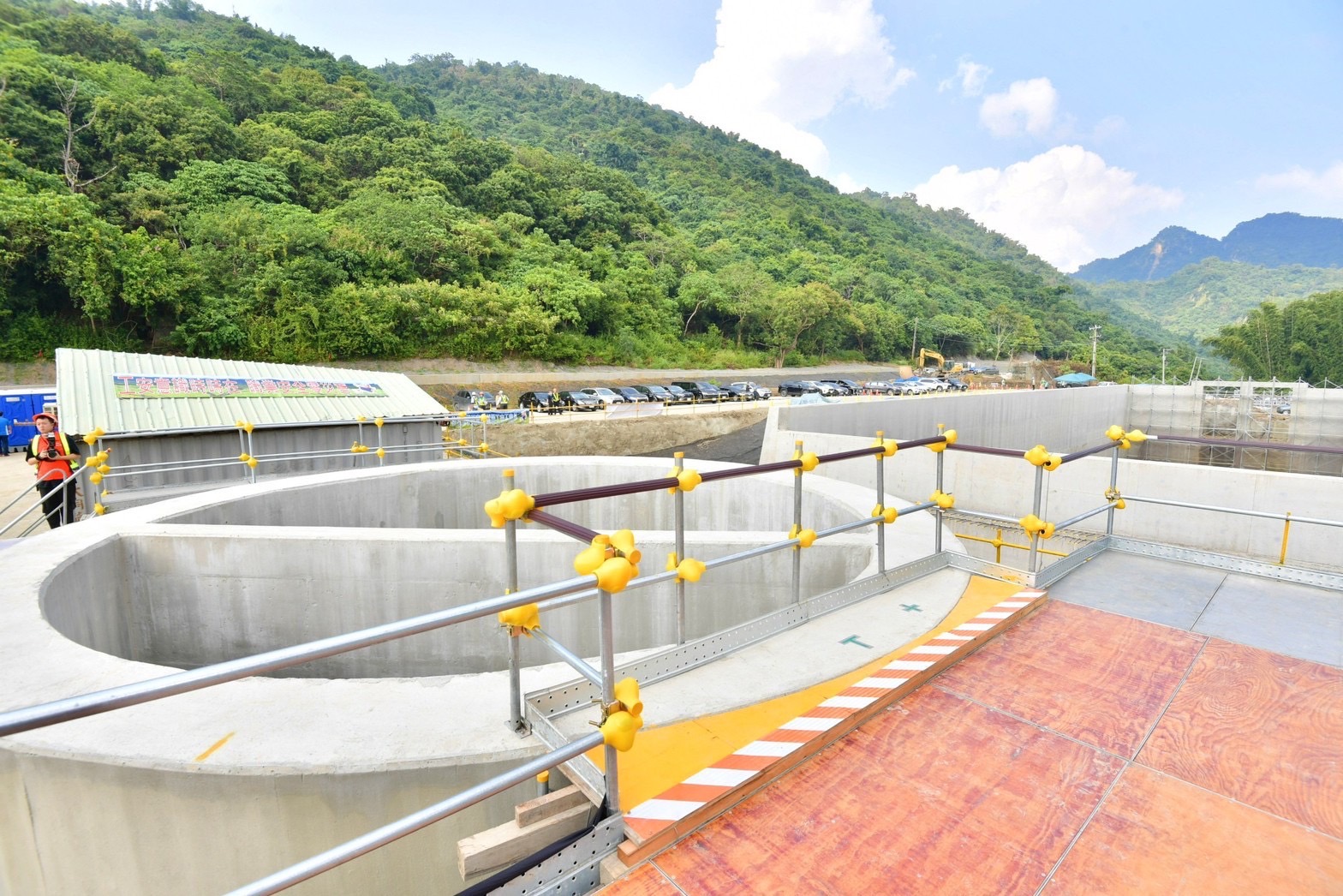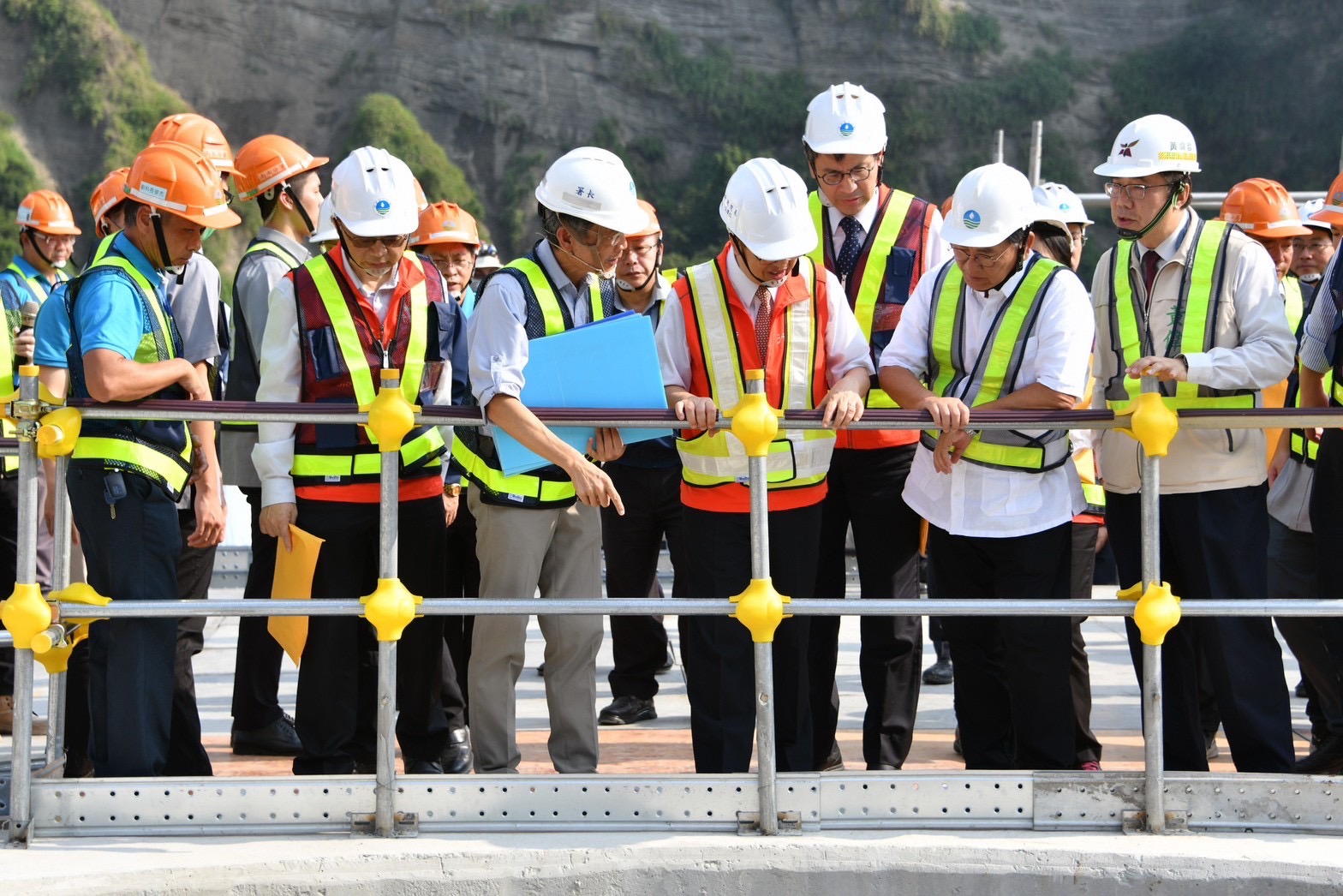 水利署賴建信署長表示,曾文南化聯通管工程計畫在執行初期面臨民眾許多疑慮,水利署除多次辦理說明會,凝聚民眾共識外,也協助推動在地產業,並加強交通維護措施與調整工法,降低施工期間對民眾生活與交通的衝擊,因此該工程能夠順利進行並超前進度,預計將較原計畫提早6個月完成。未來曾文南化聯通管完工後,曾文水庫可透過珍珠串計畫(曾文水庫-曾文南化聯通管-南化水庫-南化高屏聯通管-高屏堰),將水南送供給高雄地區;另高屏溪多餘水量也可透過此系統北送至烏山頭水庫蓄存,使曾文與南化水庫間雙向備援,調度備援能力達每日80萬噸,提升南部地區供水韌性。此外,該工程也預留木瓜園台地及東口堰2處地點後續規劃小水力發電,盼能達成創能及減碳。隨後,院長一行在賴署長的引導說明下,現地視察聯通管路工程的消能設施,了解消能豎井的構造、設置工法及可確保輸水安全的功能及效益。