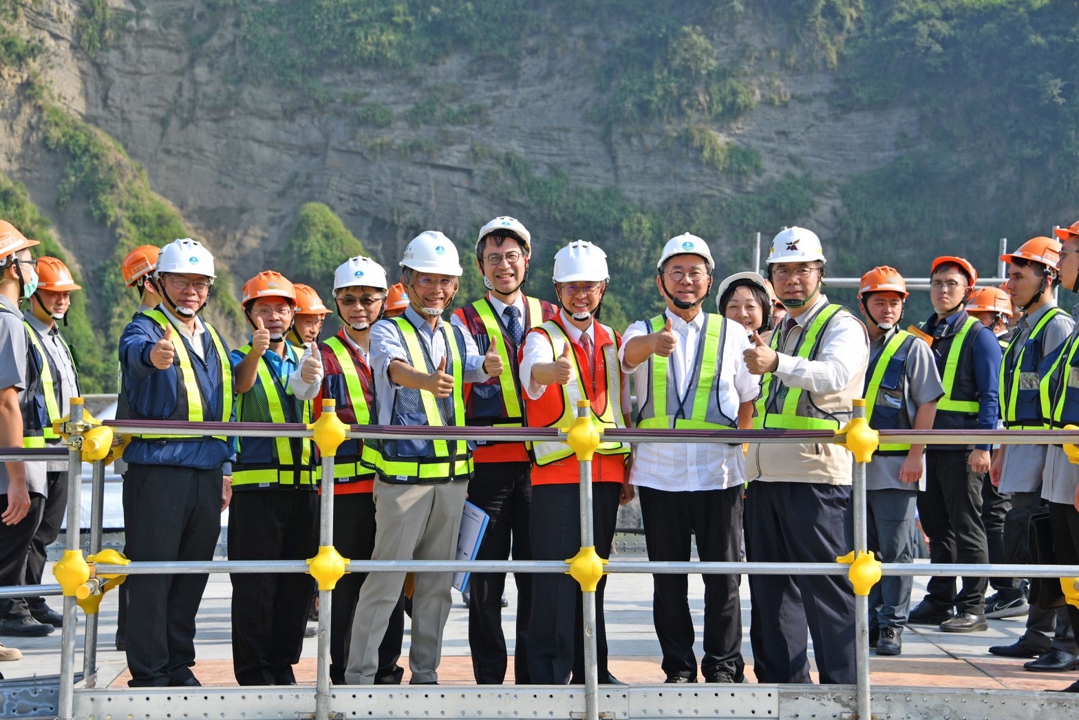 陳院長憶及,他年輕時曾攀登能高越嶺道,在高山上可看到台電公司為紀念輸電工程所設立的光被八表紀念碑。院長強調,臺灣供水與供電能夠穩定,有賴水利署、台電與台水公司同仁,以及所有工程師願意投入相關水利、電力及土木工程,造福人民,臺灣有你們真好。