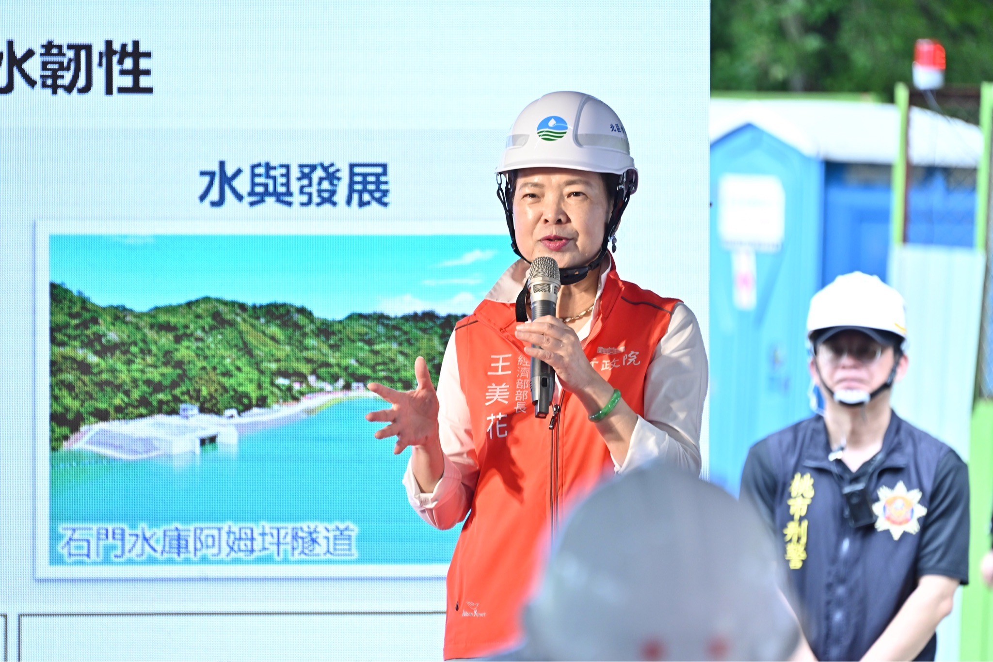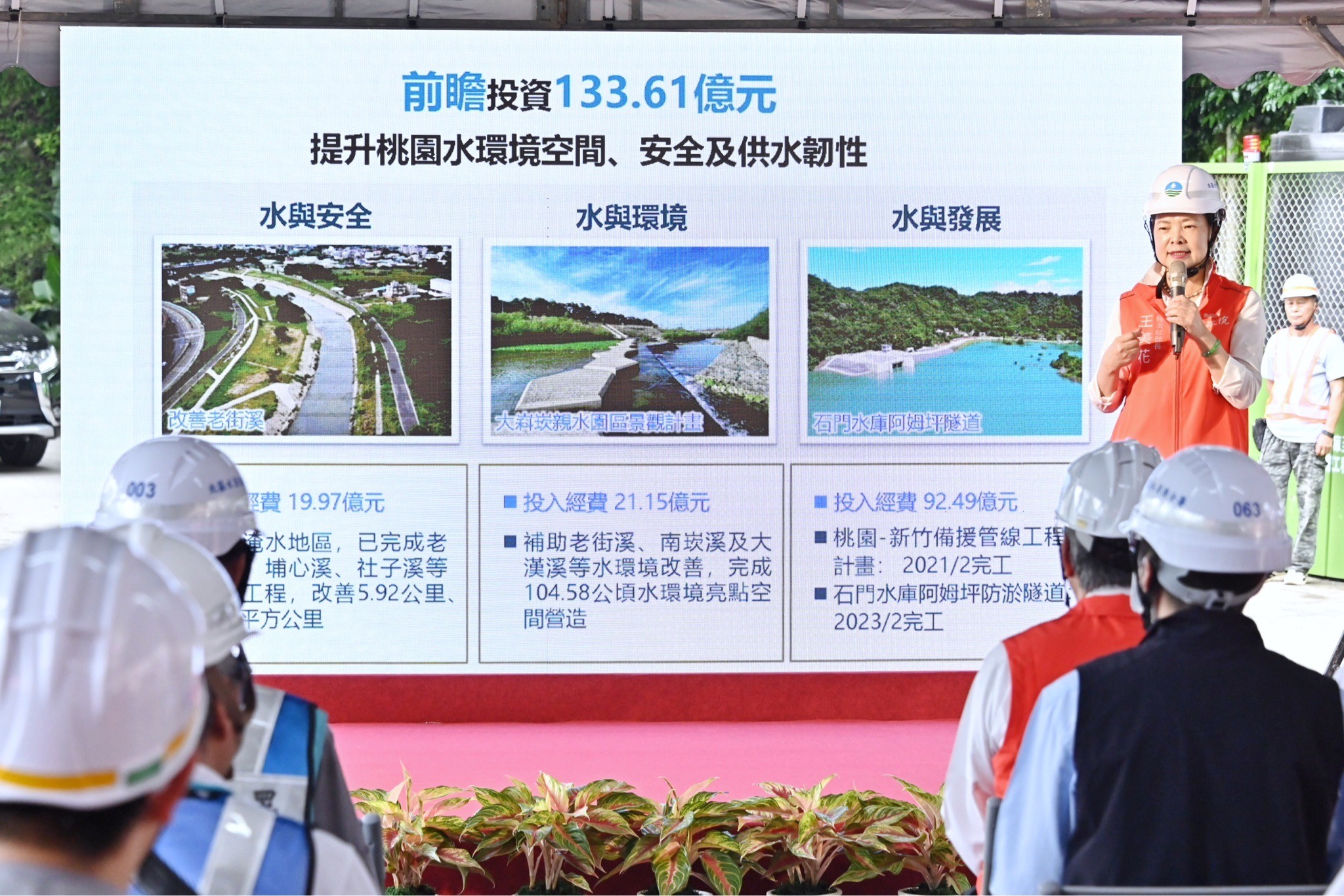陳院長進一步指出,石門水庫是北部地區相當重要的水庫,除具備灌溉與民生用水等用途外,也肩負發電、防洪與觀光等重要任務。石門水庫集水區的蓄水量,是寶山與寶二水庫集水區的3倍以上,而寶山與寶二水庫對高科技產業用水相當重要,因此透過「石門水庫新竹聯通管工程」,即可將石門水庫與寶山、寶二水庫串聯起來,每日可由石門水庫備援調度30萬噸水,將餘裕水量蓄存於新竹寶山、寶二水庫,有效提升新竹地區供水穩定,促進經濟民生發展。
