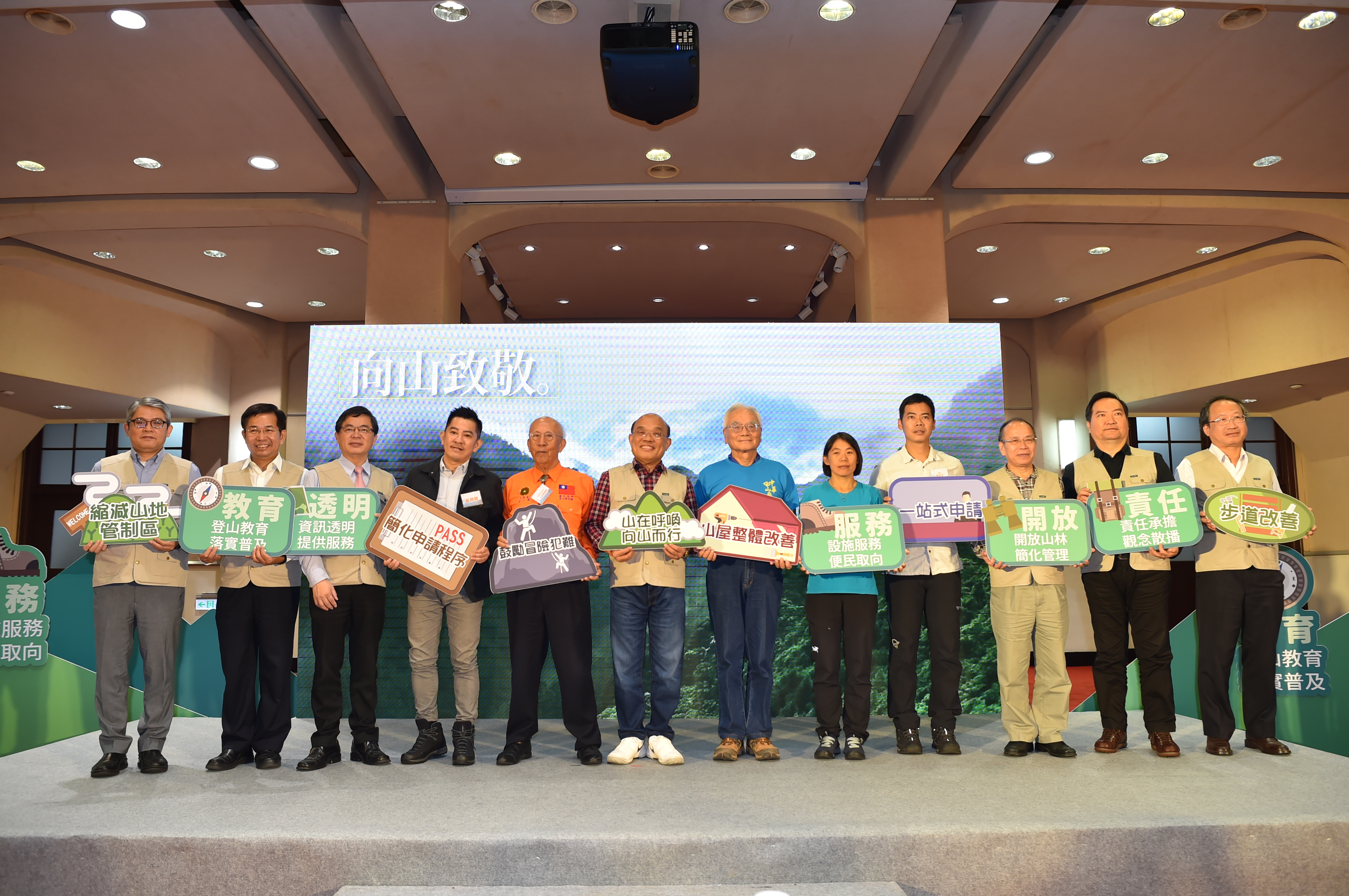 蘇院長表示,日本面積是台灣的10倍大,但3,000公尺以上高山僅有20幾座,台灣卻有268座,且台灣愛登山的山友達500萬人。過去政府扮演管理及阻擋的角色,讓民眾感覺政府不鼓勵親近山林,因此今天特別在此向民眾報告,政府應扮演平台角色,因為「山是大家的,山是台灣的,我們要向山致敬。」