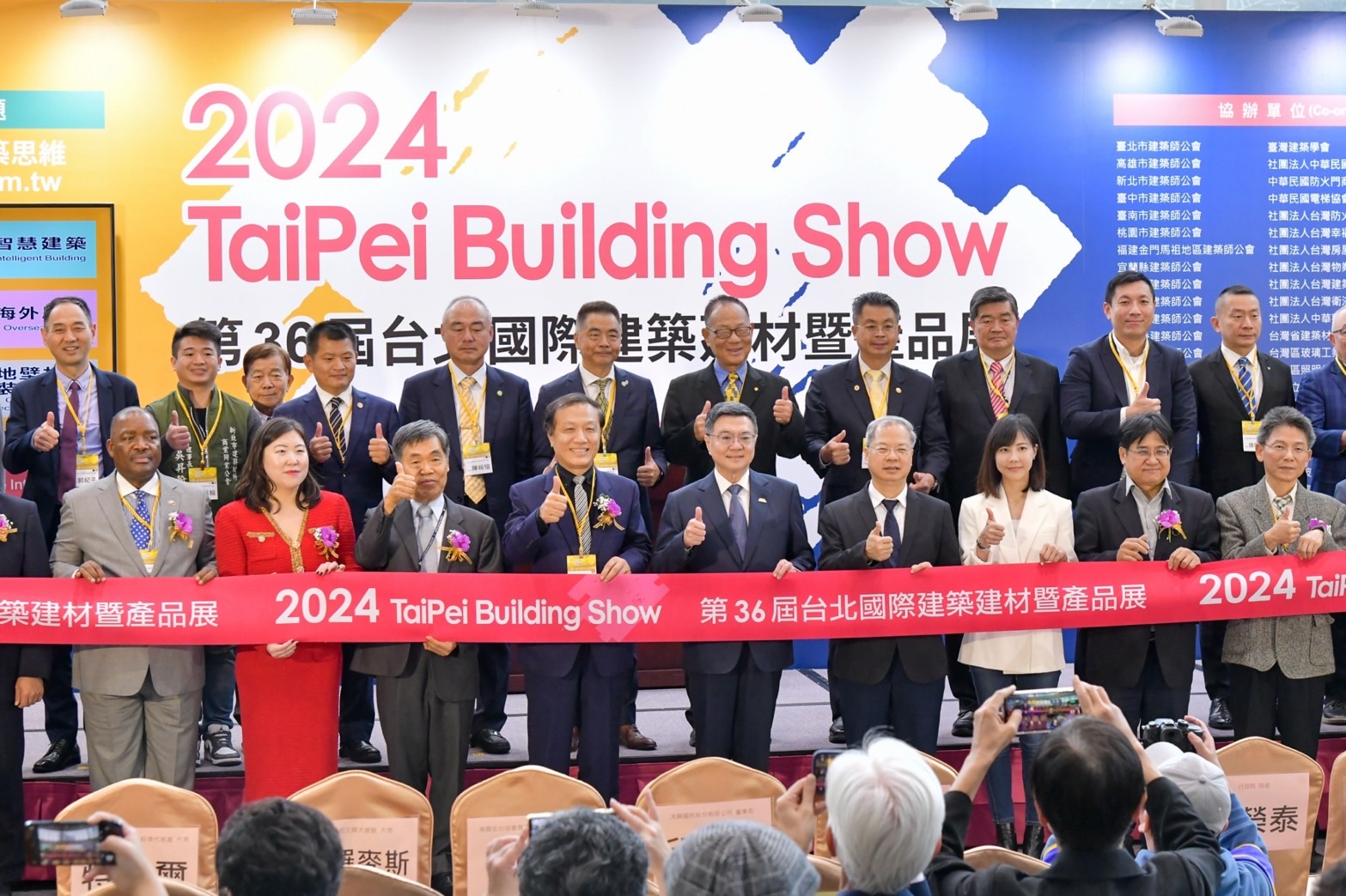 致詞結束後,卓院長與行政院龔明鑫秘書長、李慧芝發言人、內政部國土管理署吳欣修署長、勞動部職業安全衛生署萬榮富副署長、國家住宅及都市更新中心花敬群董事長、中華民國全國建築師公會崔懋森理事長、大展國際股份有限公司邱文良董事長、全國建築師公會劉國隆顧問、美國在台協會農業貿易辦事處姚望總監、加拿大駐台北貿易辦事處貿易暨投資處慕容提摩太副處長、駐台北烏蘭巴托貿易經濟代表處特木爾代表、史瓦帝尼王國大使館普羅麥斯.恩西比大使等貴賓共同剪綵,爲展覽揭開序幕。