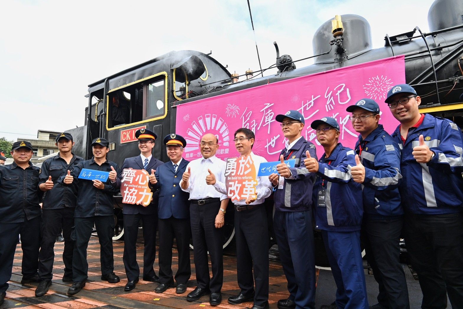 行政院長蘇貞昌今(4)日前往彰化市出席「扇形車庫啟用100週年慶祝活動」,並登上CK124號蒸汽火車副駕駛室親自體驗手拉汽笛,一圓兒時夢想。蘇院長表示,彰化是山海線交會的好地方,火車往來頻繁,因此當年需設置扇形車庫進行車輛調度及維修,目前也是東南亞唯一僅存的扇形車庫,感謝中央地方共同努力保存該國定古蹟。蘇院長也期勉臺鐵公司於公司化轉型後,能更活化運用各項資源,提升營運效能,並向優良民間企業學習,同時持續落實改革,以符合社會期待。