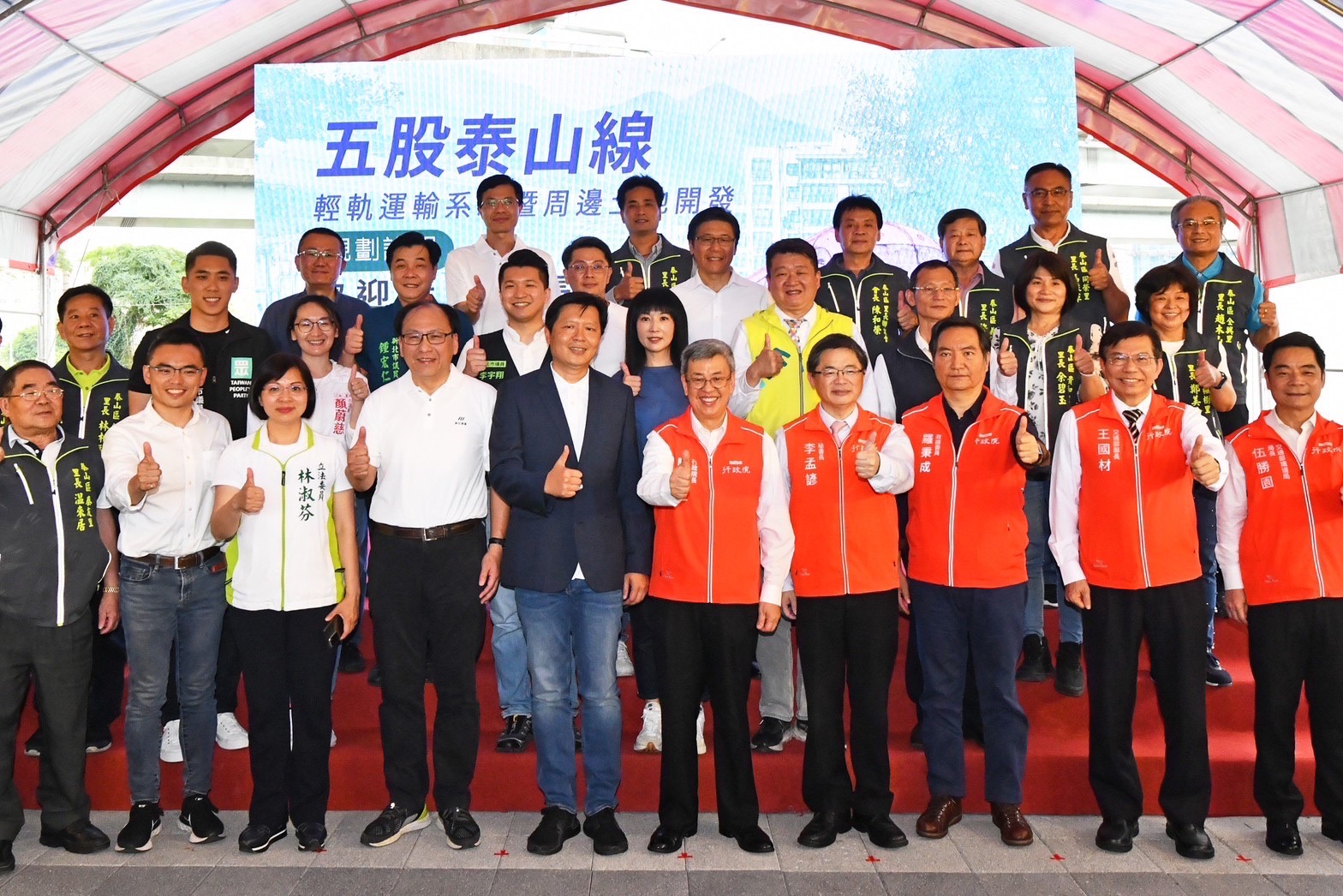 陳院長表示,五泰輕軌建設工程備受各方關注,在地立法委員於總質詢時曾就相關議題提出關切,為回應地方期待,加速五泰輕軌的推動,行政院於本月14日已核定五泰輕軌可行性研究,確認採用輕軌系統施作,其中非自償經費部分,中央補助金額更高達56%,由中央與地方共同合作,全力發展新北市的交通建設。