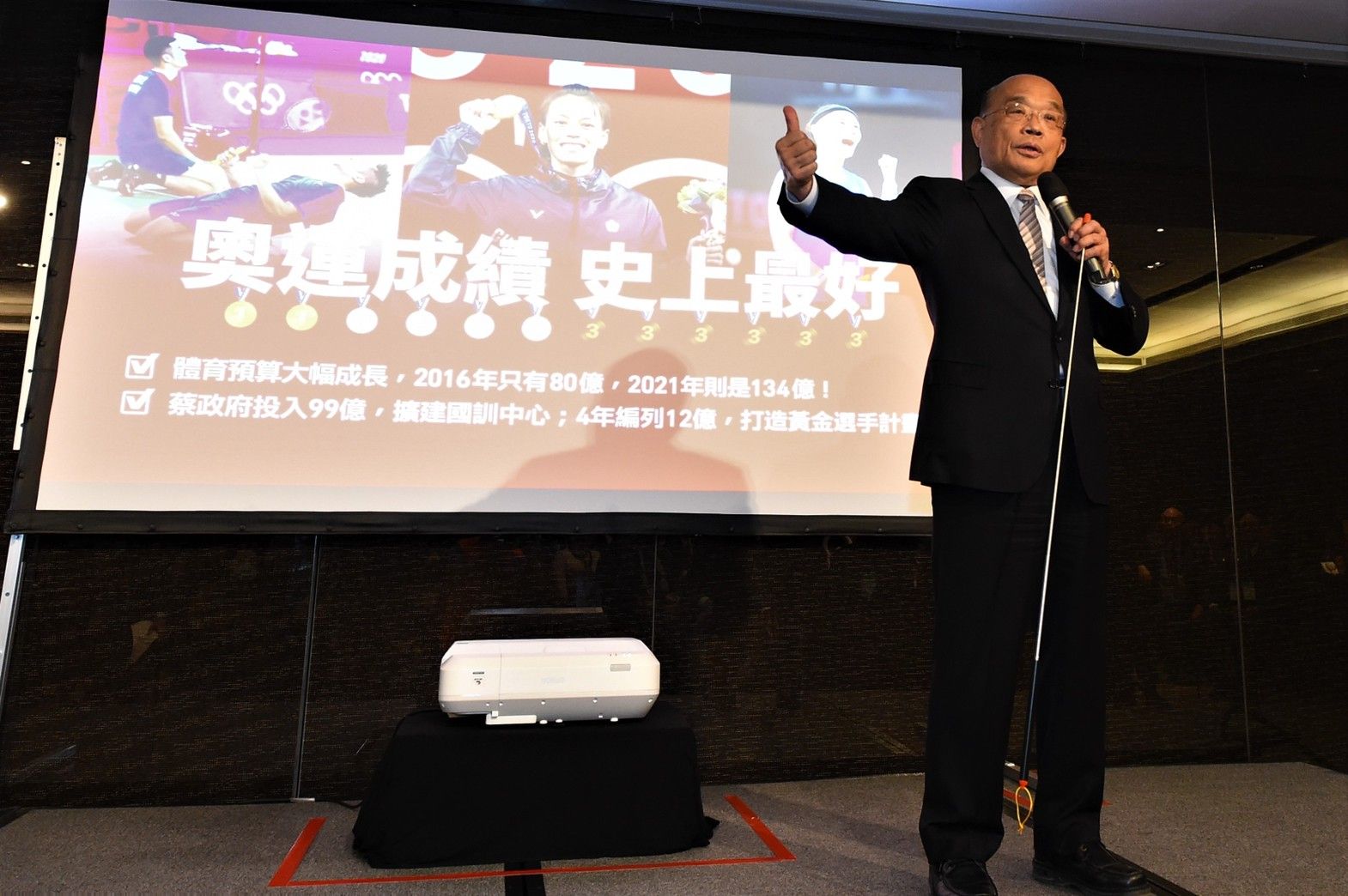 蘇院長也提到,臺灣運動選手在今年夏天的東京奧運賽事上揚名國際,國人都紛紛為他們鼓掌喝采,而選手在奪牌後,也特別表明自己來自臺灣,令人動容。院長表示,為扶植國內體育發展、培育優秀的運動選手,政府編列60億預算改善位於左營的國家運動訓練中心,並從運動員、教練、陪練員、照護員等各方面客製化訓練選手,以團隊的力量協助這些選手,真正做到「有政府、會做事」。此外,政府也在財政紀律上一直自我要求,自107年起,已連續3年歲入歲出都有賸餘,甚至超過千億以上,並持續以加薪、減稅、增福利及減負擔的方式照顧國人。