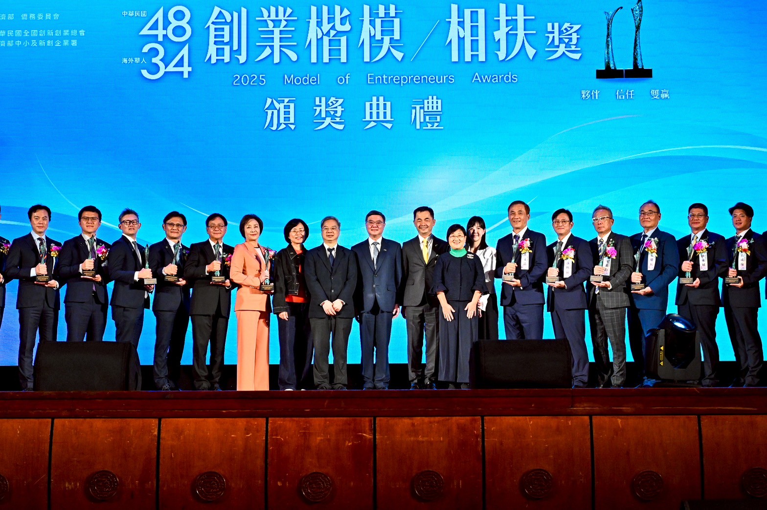 致詞完畢後,卓院長分別頒發「創業楷模獎」予國內12位及海外7位得獎人,並與行政院李慧芝發言人、經濟部龔明鑫部長、僑務委員會徐佳青委員長、蘇巧慧立委、中華民國全國創新創業總會邱銘乾總會長等貴賓與得獎人合影。接續,卓院長頒發「創業相扶獎」予19位陪伴創業歷程的重要夥伴,並合影留念。