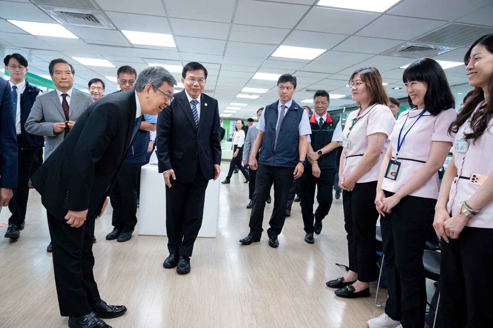 陳院長強調,普發現金工作能夠順利推動,要感謝交通部、中華郵政公司等諸多單位團結一致、共同合作,提供民眾更便利的服務,並善盡社會責任,落實普惠金融的精神,尤其郵局服務據點多,且同仁服務態度親切,願意展現一顆溫暖和關懷的心,投入有溫度的無障礙友善服務,讓每一位前來郵局辦事的民眾皆能有賓至如歸的感受,相當不簡單。陳院長也藉此機會向所有郵局同仁說聲「你們實在太棒了,有你們真好!」。