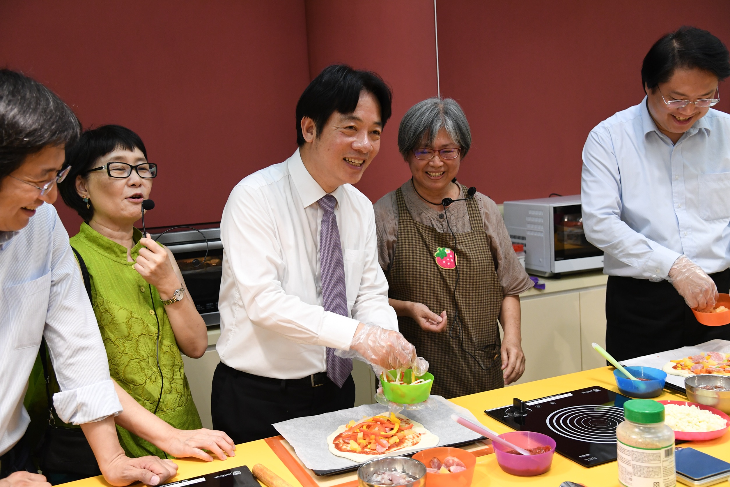 隨後,賴院長於參訪基隆市祖孫館時表示,過去基隆許多閒置空間,經由林市長與市府團隊的專業與創造力,逐一有嶄新改變,例如東岸老舊停車場搖身成為市民喜愛的商場、正濱漁港吸引遊客造訪,以及由幼兒園轉型的祖孫館,將基隆由黑白轉為彩色,日益進步美麗。