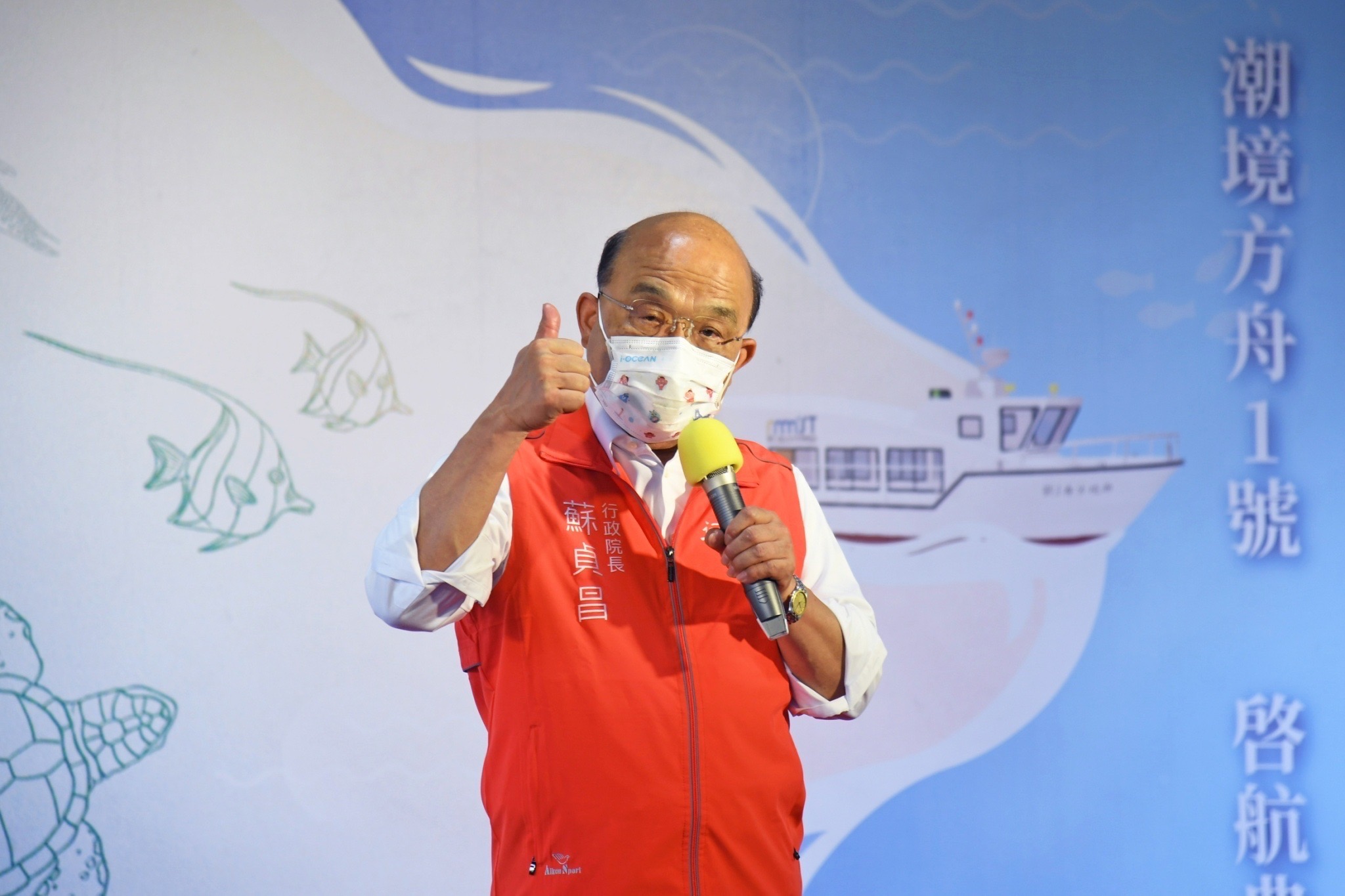 蘇院長指出,今天新船啟航典禮,正是具體展現行政院2年前(109年)宣示推動的「向海致敬」政策。院長憶道,他年幼時隨時可去海邊游泳,一直到高三畢業等待大學放榜之前,都時常從屏東市騎著自行車到東港游泳,體驗大海的美好;後來因為政治關係,政府實施海禁政策,禁止人民接近海洋,此實為錯誤的政策。