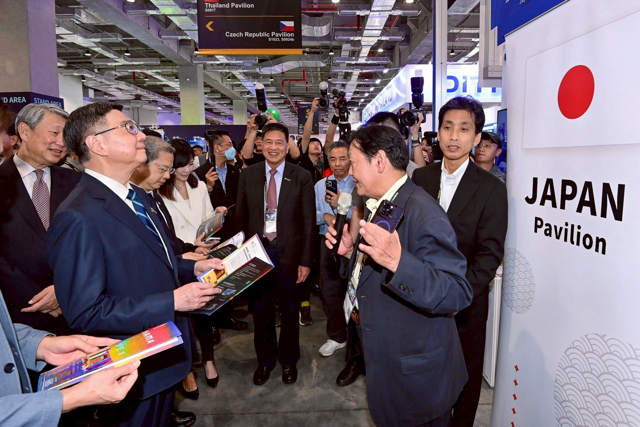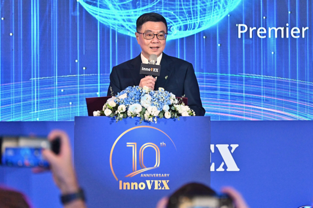 致詞結束後,卓院長與行政院龔明鑫秘書長、李慧芝發言人、劉鏡清政務委員兼國家發展委員會主委、經濟部郭智輝部長、數位發展部黃彥男部長等人,共同觀賞InnoVEX十週年紀念影片,並與彭双浪理事長、黃志芳董事長合切十週年蛋糕。隨後,卓院長參觀日本館、泰國館、經濟部技術司智領未來館、NVIDIA Inception Startup、陽明交大x新竹科學園區主題館、經濟部中小及新創企業署STARTUP INNOVATION、經濟部技術司TREE、Garage+、IC TAIWAN GRAND CHALLENGE、法國館等展覽攤位。