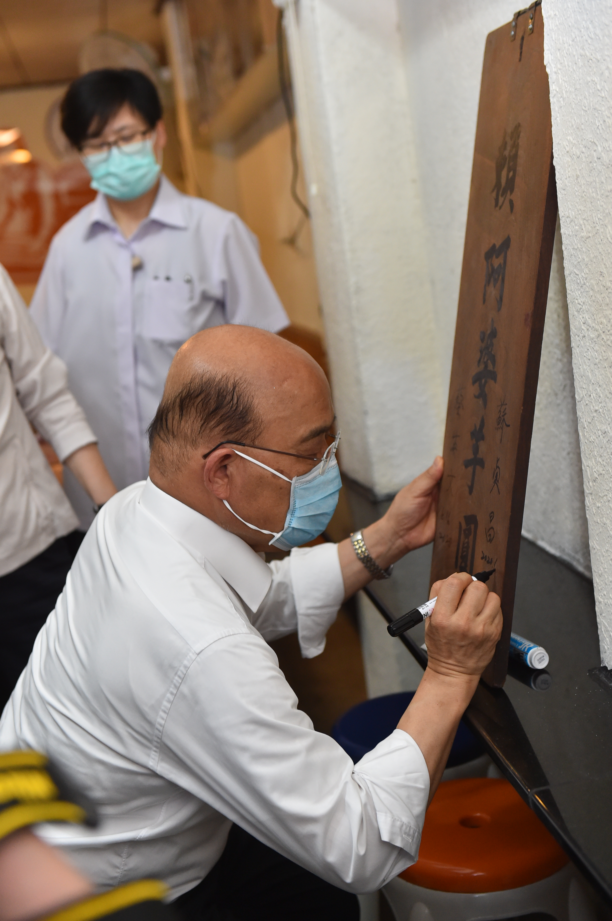 蘇院長接著前往日治時期北台灣最大電影院、整修後又重新開放的「昇平戲院」參觀並聽取導覽。參訪完九份商圈後,蘇院長陪同蔡總統至九份青雲殿參拜祈福。