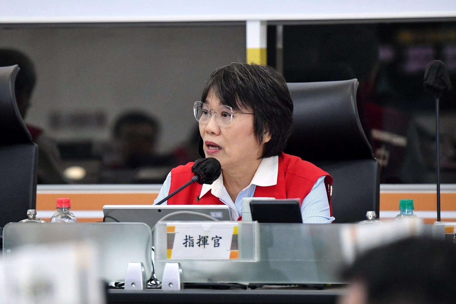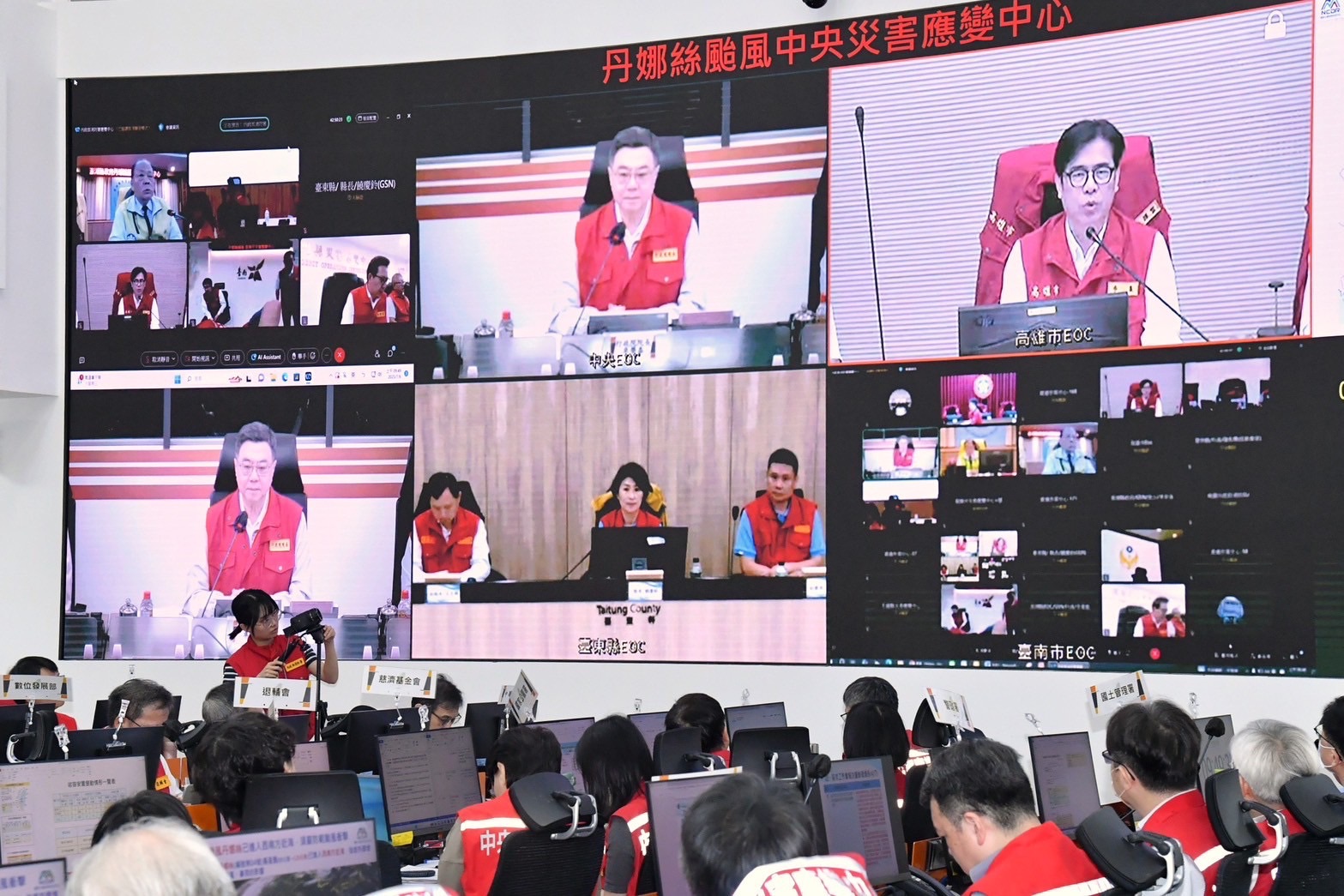 今日包括行政院龔明鑫秘書長、季連成政務委員、李慧芝發言人、中央災害應變中心指揮官內政部劉世芳部長、經濟部郭智輝部長、農業部陳駿季部長、衛生福利部邱泰源部長、環境部彭啓明部長、文化部李遠部長、數位發展部黃彥男部長、教育部朱俊彰次長、交通部陳彥伯次長、海洋委員會張忠龍副主委、國軍退除役官兵輔導委員會傅正誠副主委、原住民族委員會谷縱‧喀勒芳安Qucung Qalavangan副主委等人,均出席中央災害應變中心第四次工作會報暨情資研判會議。