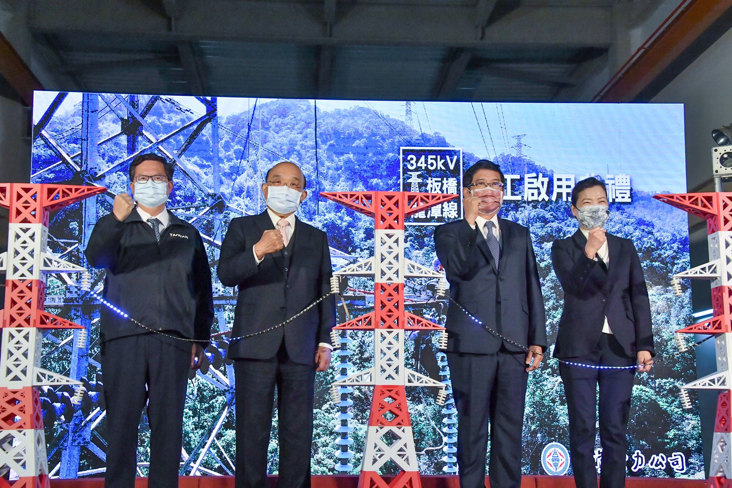 行政院長蘇貞昌今(6)日出席台灣電力公司「345kV 板橋~龍潭線竣工啟用典禮」時表示,電力供應一刻不能缺、也不能停,這項工程耗時18年、投入經費近33億元,還有施工協力廠商及第一線工作同仁離鄉背井、辛苦投入,在深山裡過著像山頂洞人的生活,犧牲奉獻,讓國人得以用電,得到溫暖。院長說,今天要來表揚這些電力英雄,也向所有同仁、協力廠商致敬、感謝。